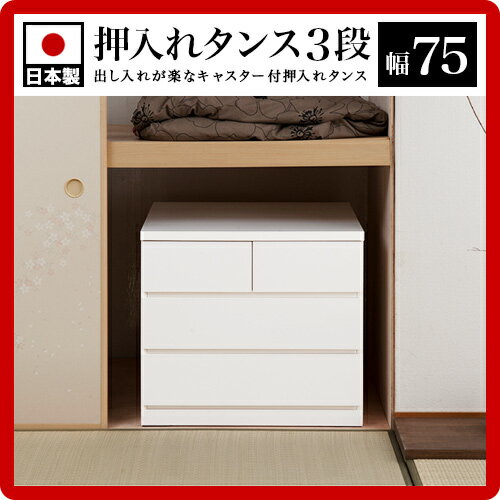 クローゼットチェスト 幅75 奥行40 3段 ホワイト 木製 完成品 日本製 チェスト 整理ダンス 洋服タンス ローチェスト タンス 引き出し引出し 箪笥たんす 整理 北欧 白 お