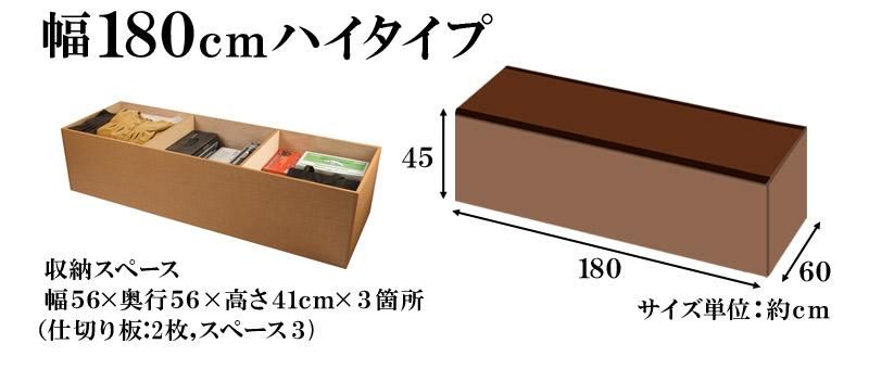 本体サイズ:約幅180×奥行60×高さ45cm、内寸(収納スペース):約幅56×奥行56×高さ41cm×3箇所(仕切り板:2枚,スペース3)