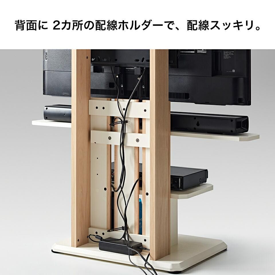 商品説明 北欧スタイルを取り入れた、インテリア性と機能性を併せ持ったキャスター付きフロアスタンド。キャスター付きで移動も、お掃除も簡単です。※アジャスター付で固定も出来ます。サウンドバー用可動棚、レコーダー用固定棚、オープン収納付きで収納力の抜群!金具は前後傾斜が可能なチルト機構付きでTVを鑑賞しやすい角度に調整が可能です。※前傾15°/ 後傾5°サウンドバーやレコーダーの配線も、前板スリットで楽々♪対応サイズ32〜77V対応。対応VESA 横75〜600mm 縦75〜400mm。
