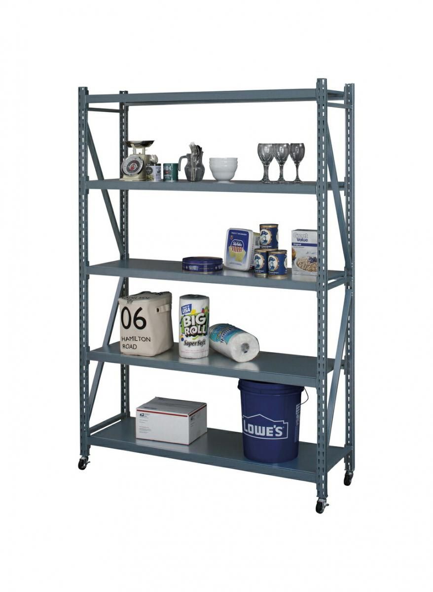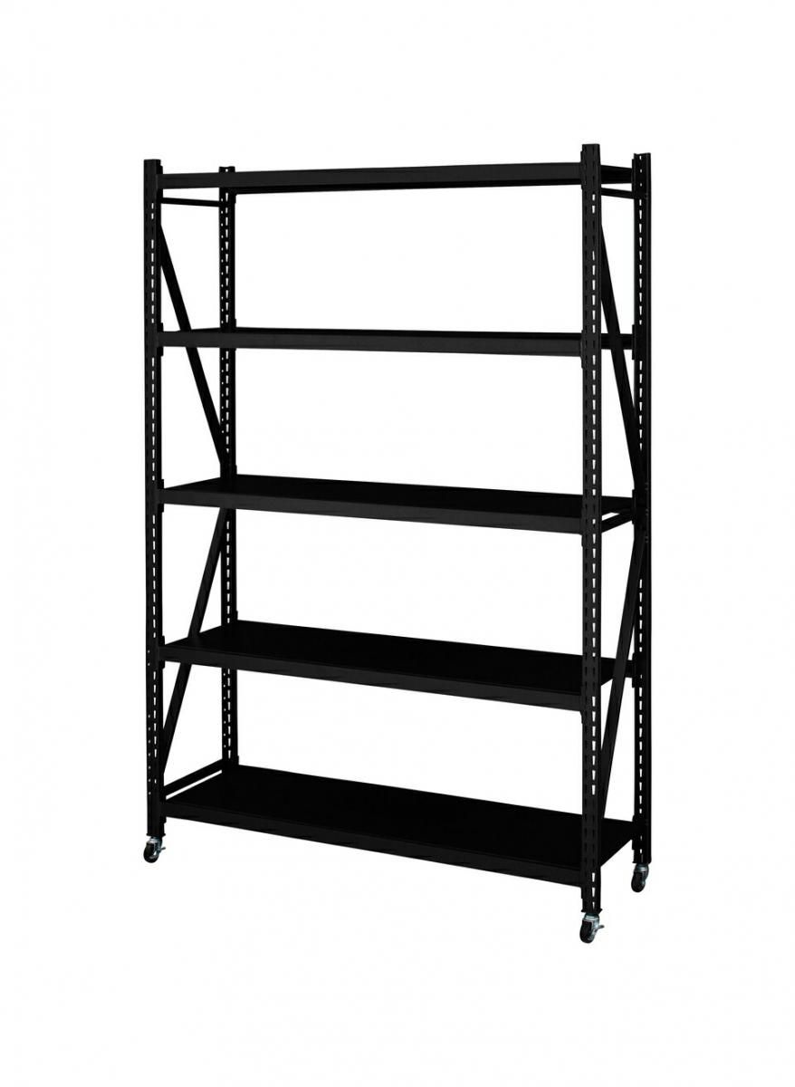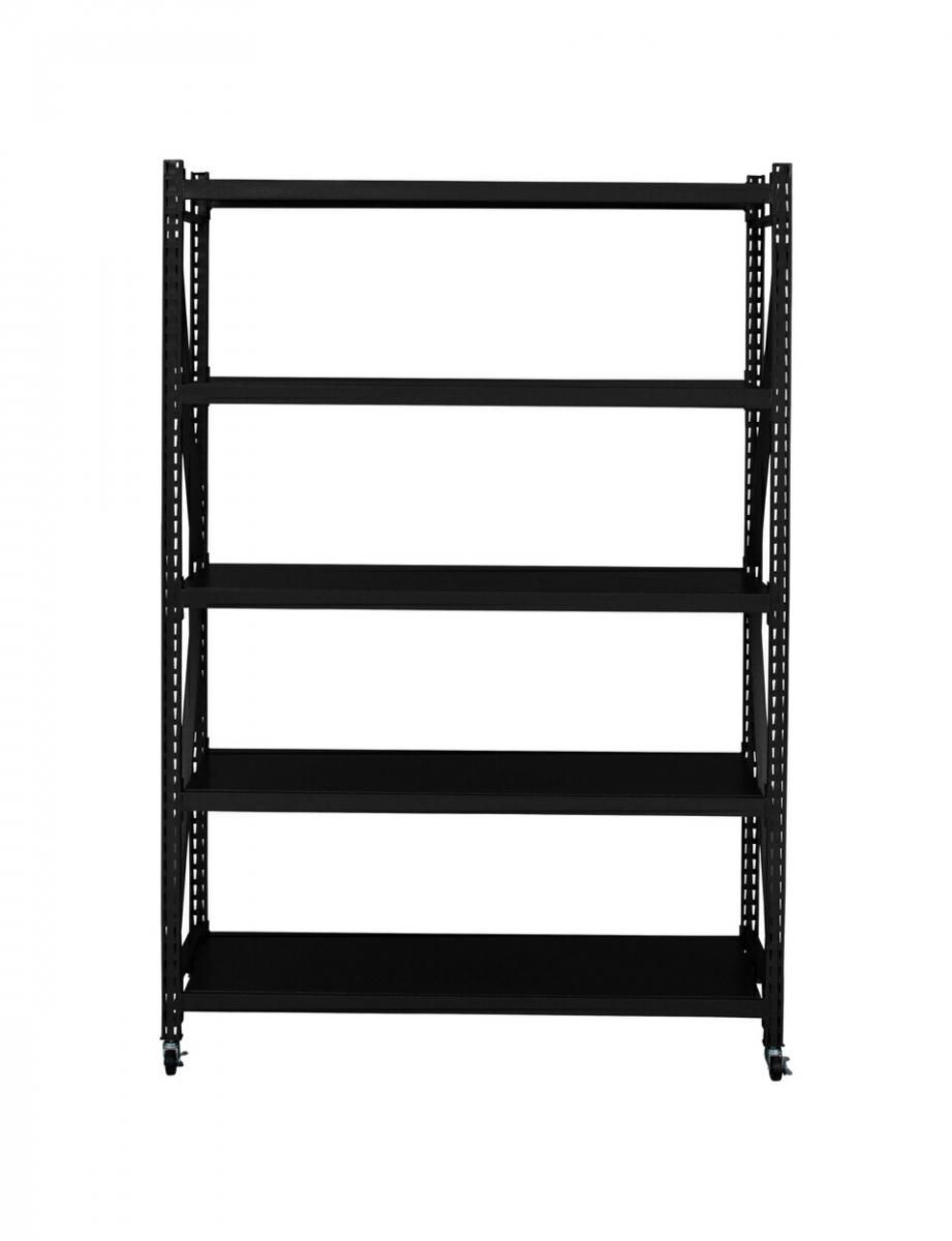 無骨さを取り入れたラックボルトレスラックはボルトが不要なので簡単に組立て、棚移動が行えます。キャスターも付いているので、移動も容易にできます