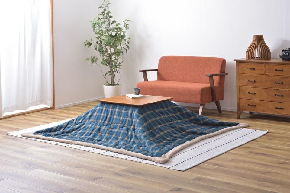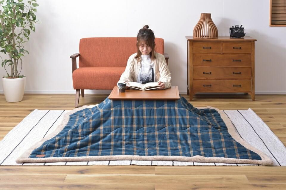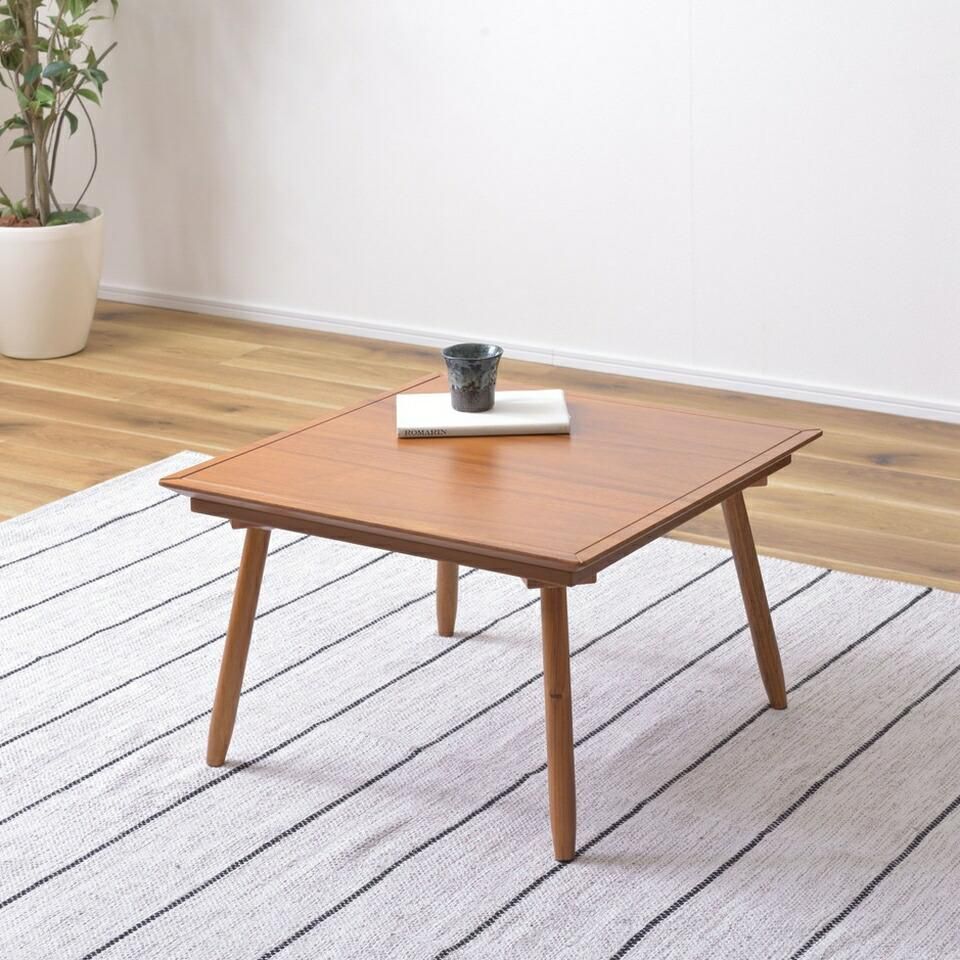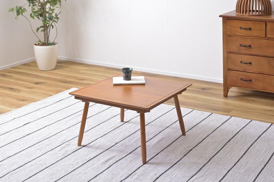 一人使いにちょうど良いコンパクトなコタツテーブル。天然木の風合いや天板のラインなどシンプルでシャープな印象のテーブルです。