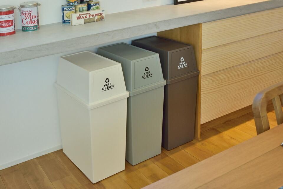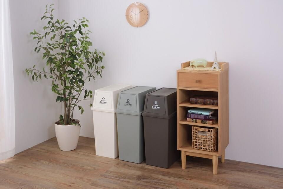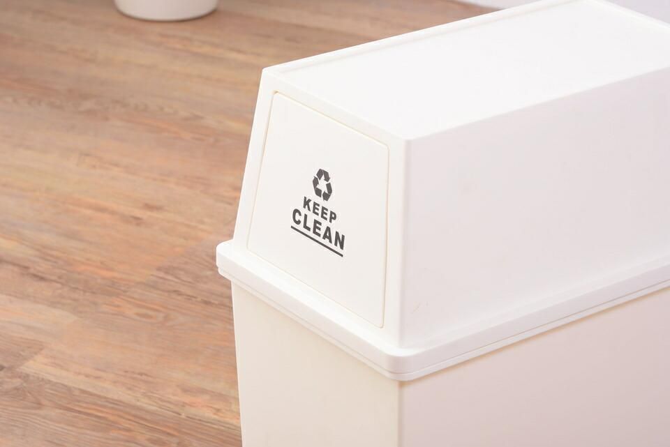 高品質な日本製。ツヤ消しで、マットな質感のゴミ箱。蓋はフラップタイプで、ゴミを捨てた後もピッタリ蓋が閉まります。可動タイプの袋止め付き。前後左右に移動が楽なキャスター付き。
