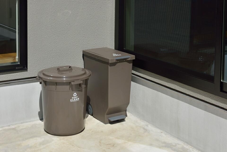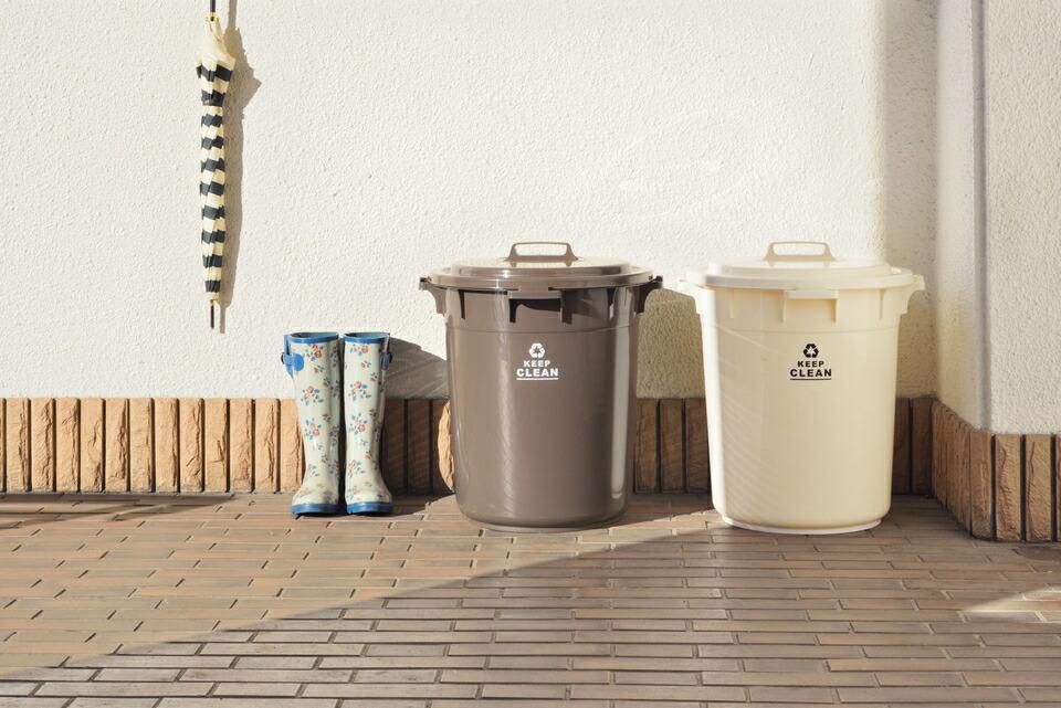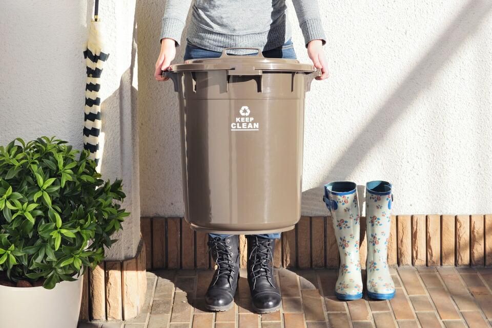 ペール45L 日本製 デザイン 取っ手 スライド ロック 雨風 強い 持ち運び ゴミ箱 45L ラウンドペール 丸型 フタ付き ロック機能付き ポリプロピレン