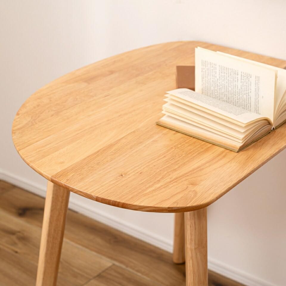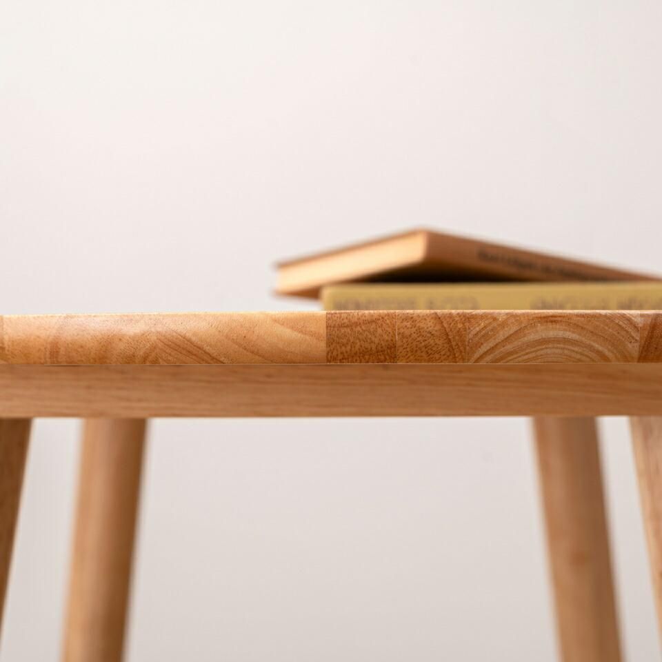 天然木のぬくもりを感じる北欧風デザインの「helppo」シリーズより、個性的なフォルムのダイニングテーブルが登場しました。木目を活かしたデザインと、エッジを極力落とした丸みのあるフォルムが優しい印象を与えます。