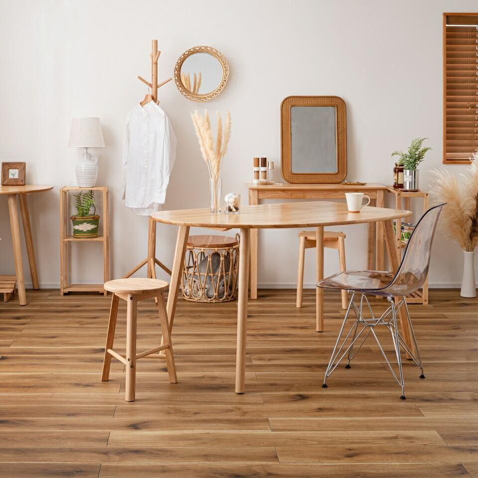 天然木のぬくもりを感じる北欧風デザインの「helppo」シリーズより、個性的なフォルムのダイニングテーブルが登場しました。木目を活かしたデザインと、エッジを極力落とした丸みのあるフォルムが優しい印象を与えます。