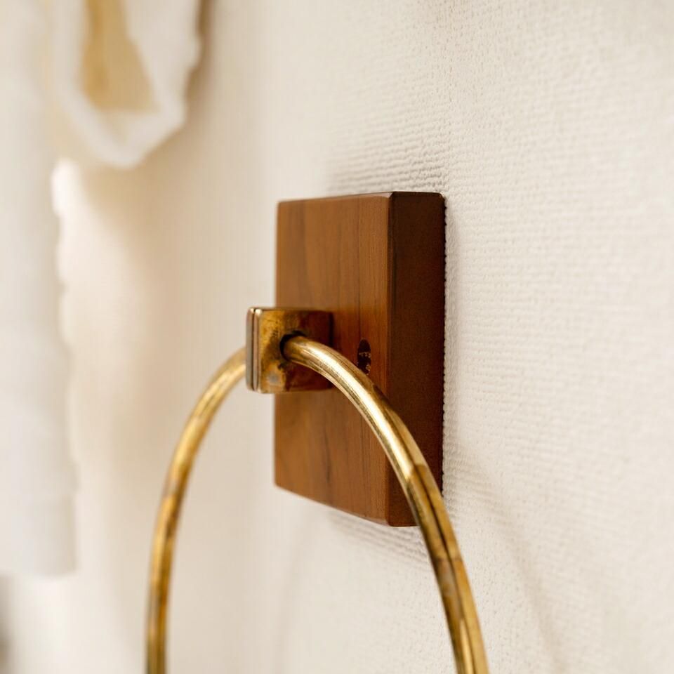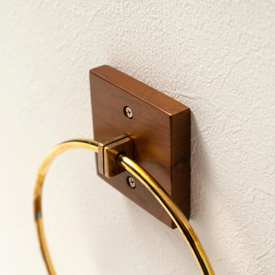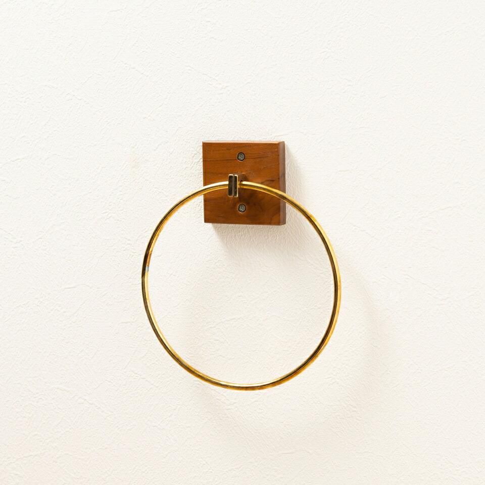 ■備考タオルハンガー タオル掛け タオルホルダー 壁掛け 収納 収納棚 木製 天然木 ブラウン マホガニー材 マホガニー 木 おしゃれ シンプル ナチュラル 北欧 カントリー カントリー調 ゴールド 金 金色 円 丸 リング