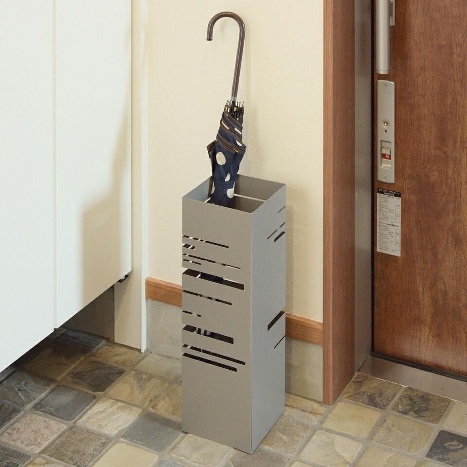 傘立て 直線 デザイン シンプル インテリア スクエア 安定 トレイ 水滴 手入れ 簡単 自宅 オフィス エントランス スリム おしゃれ 水受けトレー付