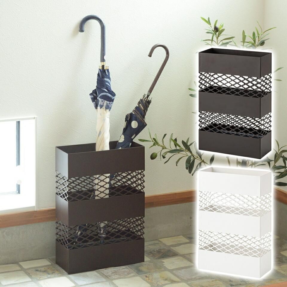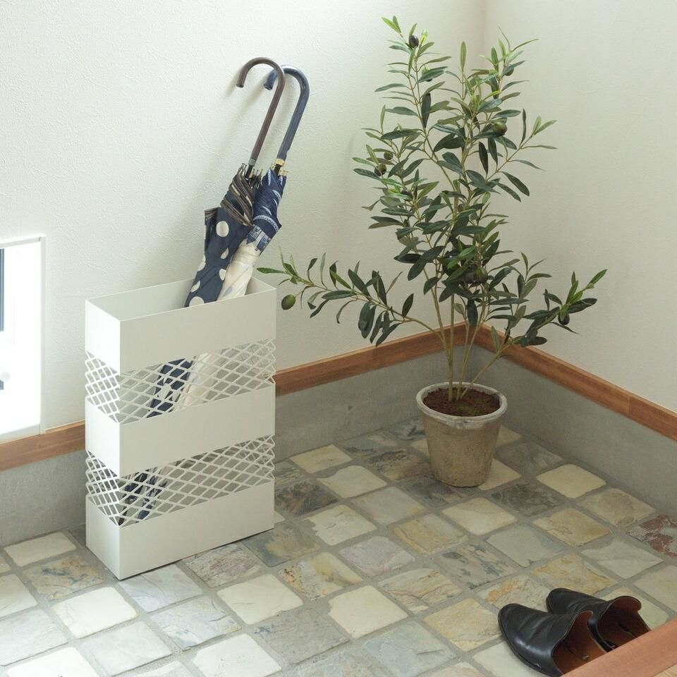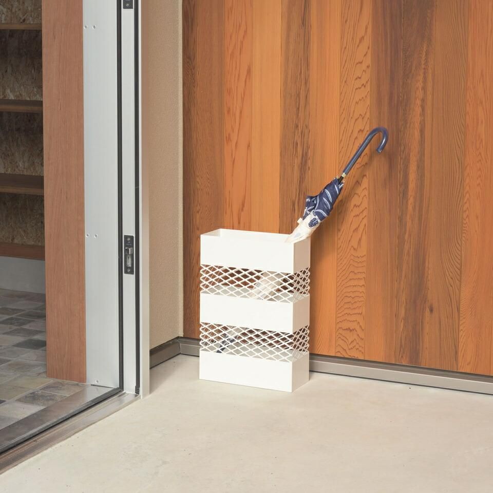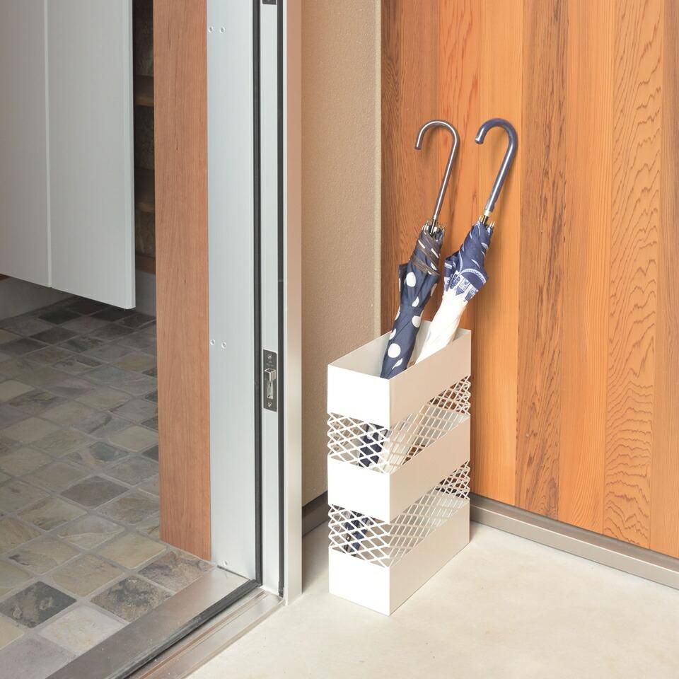 傘立て 網目 デザイン シンプル インテリア スクエア 安定 トレイ 水滴 手入れ 簡単 自宅 オフィス エントランス スリム おしゃれ 水受けトレー付