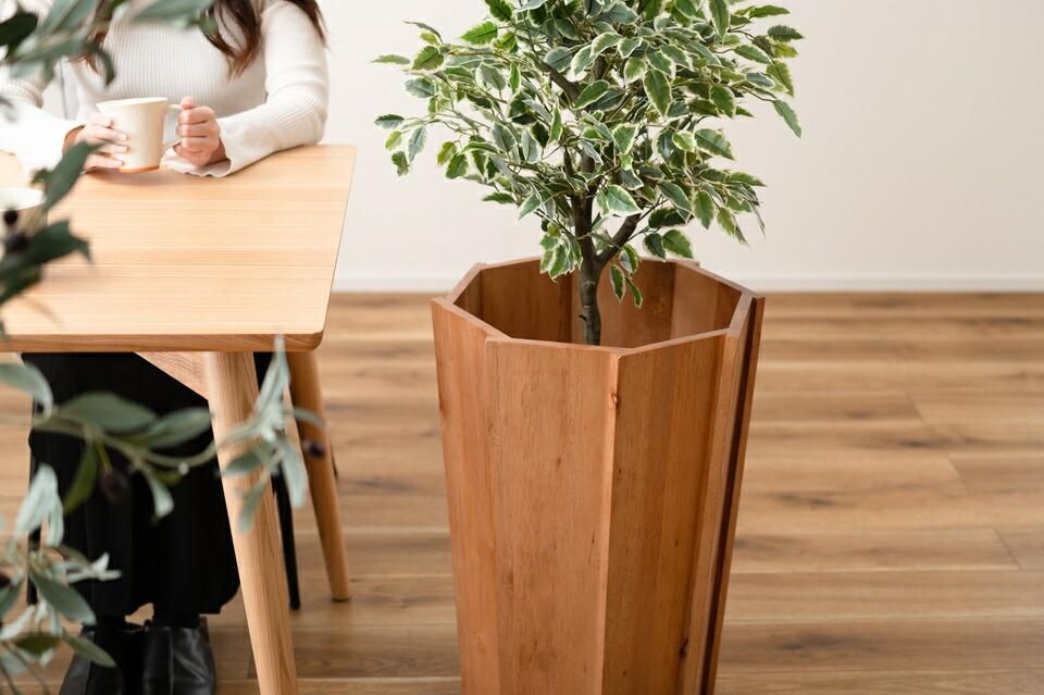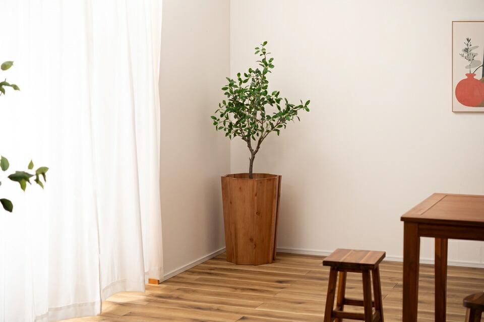植物を鉢のまま入れるだけで、その存在感や魅力を最大限にアップグレードしてくれるウッドプランター。ミンディの風合いをそのまま活かし、様々なインテリアに取り入れやすいデザインに仕上がっています。