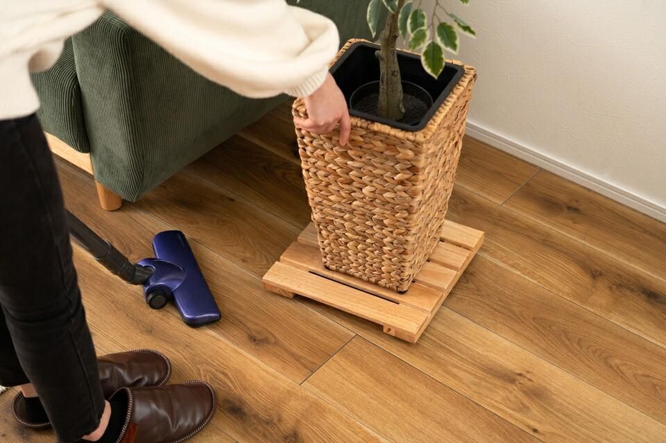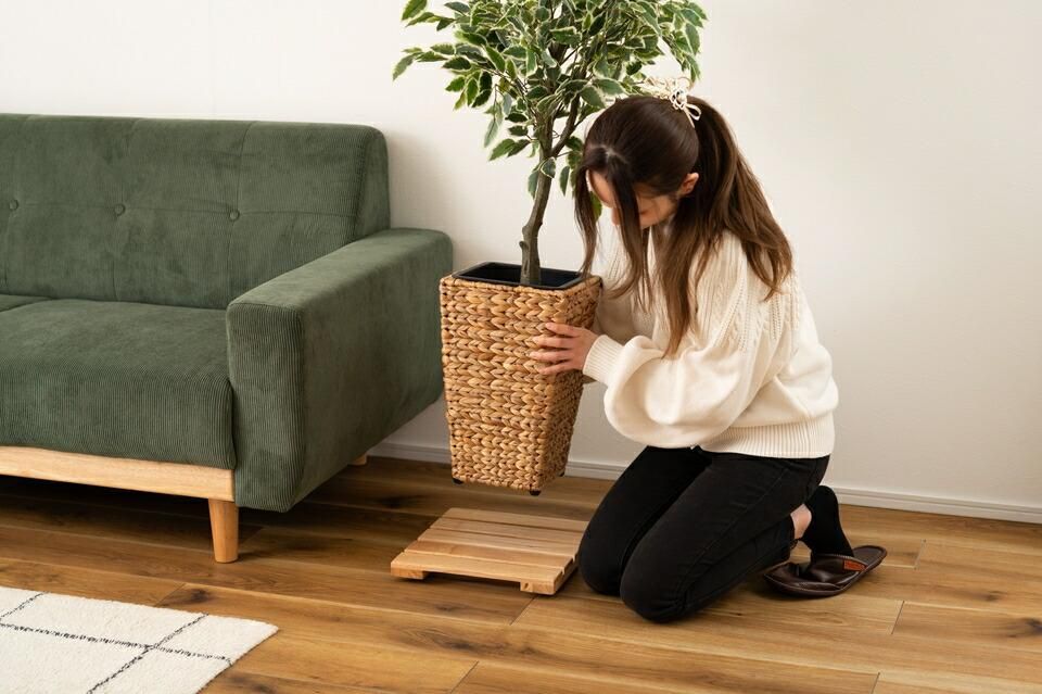 観葉植物の、お掃除中や水やりでのちょっとした移動や、日光浴や模様替えの際の大きな移動がスムーズに行える、キャスター付きのプランターベース。目立たない隠しキャスターでインテリアの邪魔をせず、360度回転してくれるので移動したい方向に楽に動かす事が出来ます。