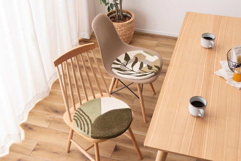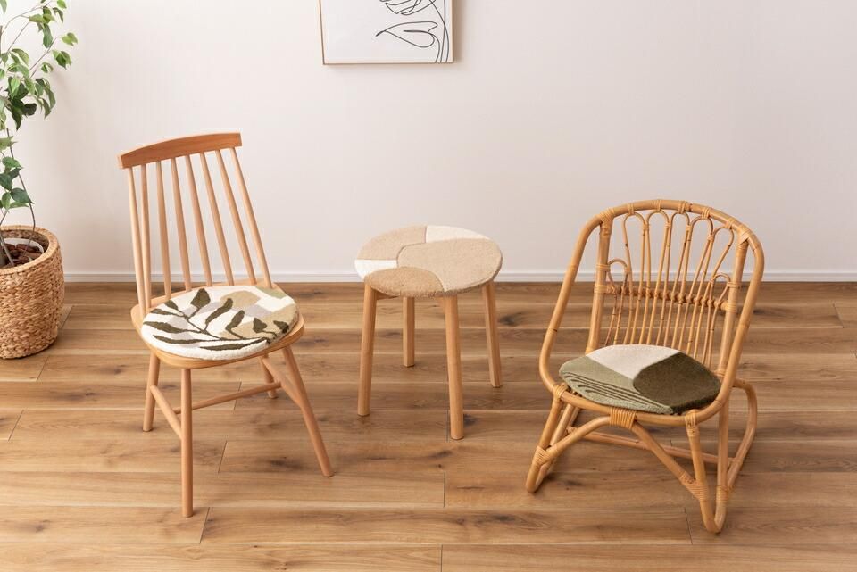 チェアやベンチに1点プラスで、インテリアも座り心地もアップ人気のタフティングを座り心地の良いシートクッションに仕上げました。1点1点手作業で丁寧に作られており、普段使っているチェアやベンチ、スツールなどに置くだけで、インテリアのアクセントになるだけでなく、使用感もアップする嬉しいアイテムです。