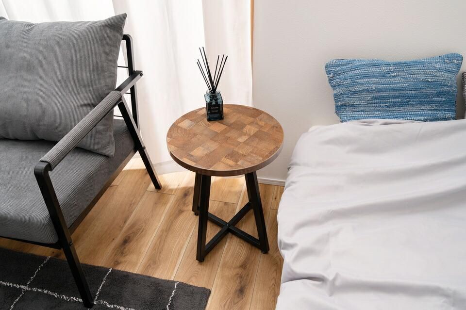 ■ラウンドテーブル S 人工 オーク デザイン かわいい ミニ テーブル ソファー サイド リモコン 玄関 小物 ベッドサイド ルームランプ ■