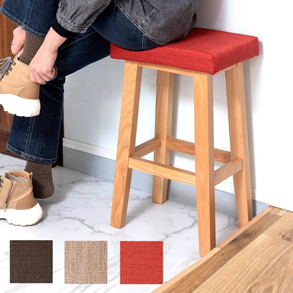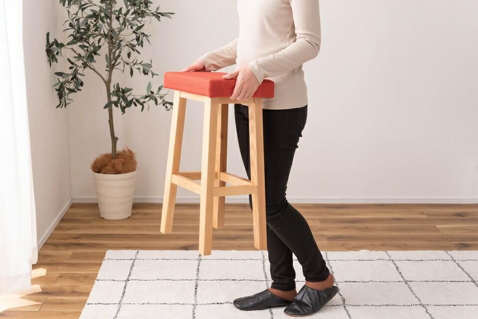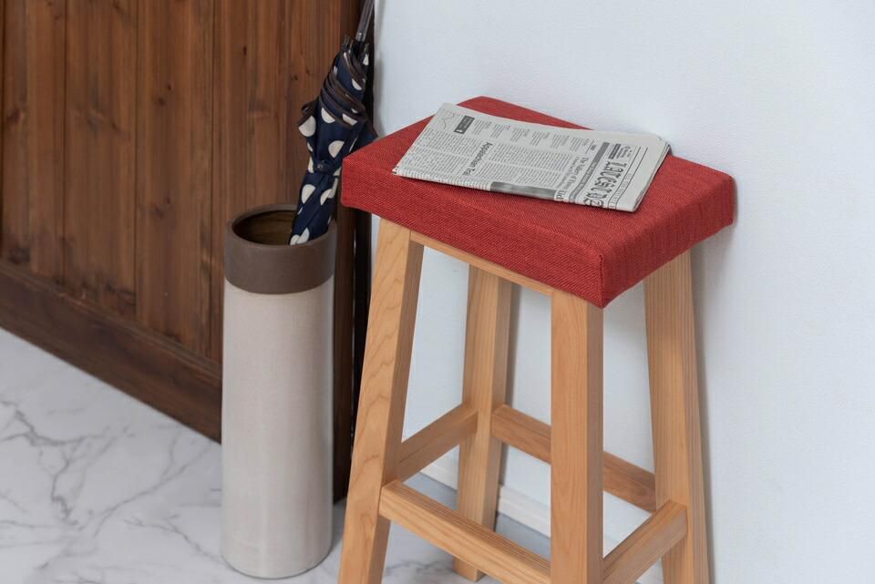 木脚とファブリックを組み合わせたハイタイプのスツール。キッチンやデスクに、使い勝手の良い高さ。