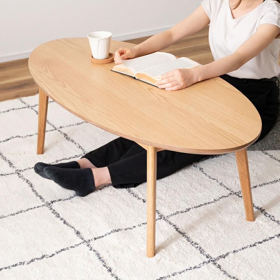 ■備考カフェテーブル リビングテーブル テーブル ローテーブル センターテーブル 北欧 幅120cm 木製 天然木 突板 ナチュラル シンプル 楕円形 一人暮らし 板目 柾目 オーク リビング