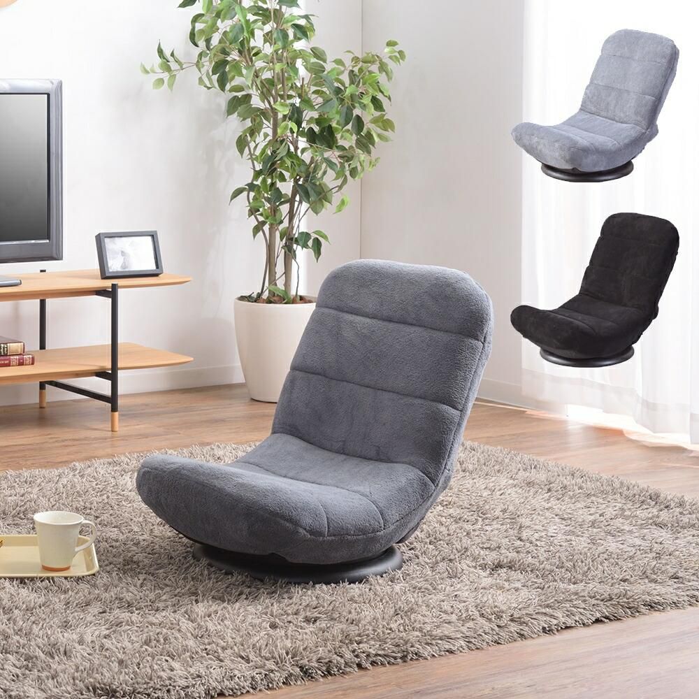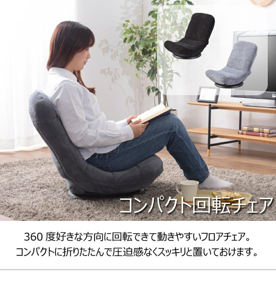 ■コンパクト回転チェア フロアチェア 座椅子 回転チェア 回転 360度 7段階リクライニング 背面共生地 折りたたみ コンパクト 起毛 シンプル グレー ブラック ■