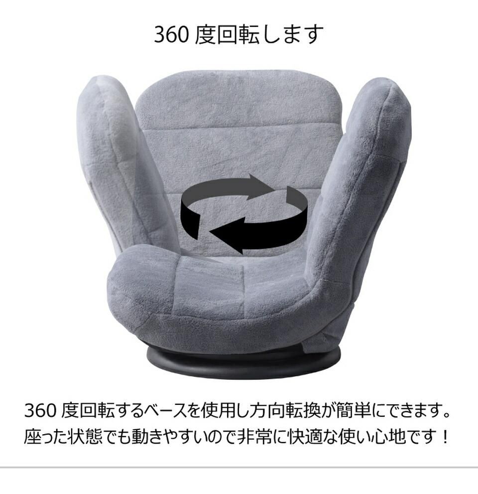 ■備考フロアチェア 座椅子 回転チェア 回転 360度 7段階リクライニング 背面共生地 折りたたみ コンパクト 起毛 シンプル グレー ブラック