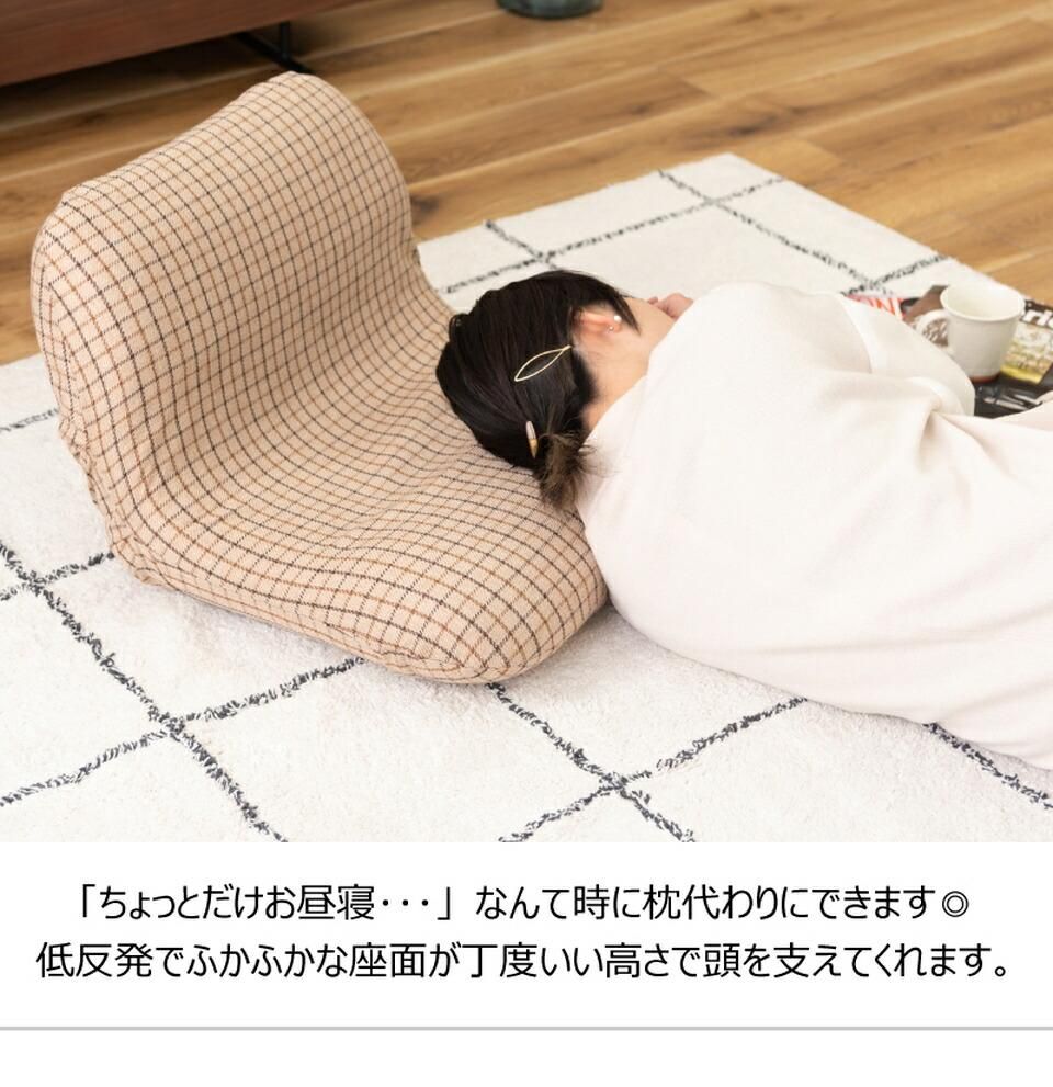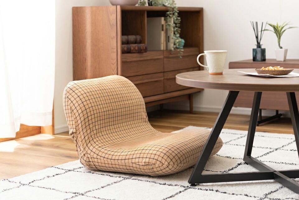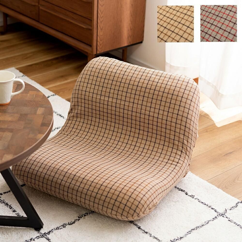 丸いフォルムとチェック柄がかわいいフロアチェア。S字カーブの構造が身体にしっかりフィットし、ゆったりとくつろぐことができます。
