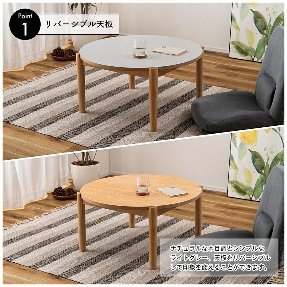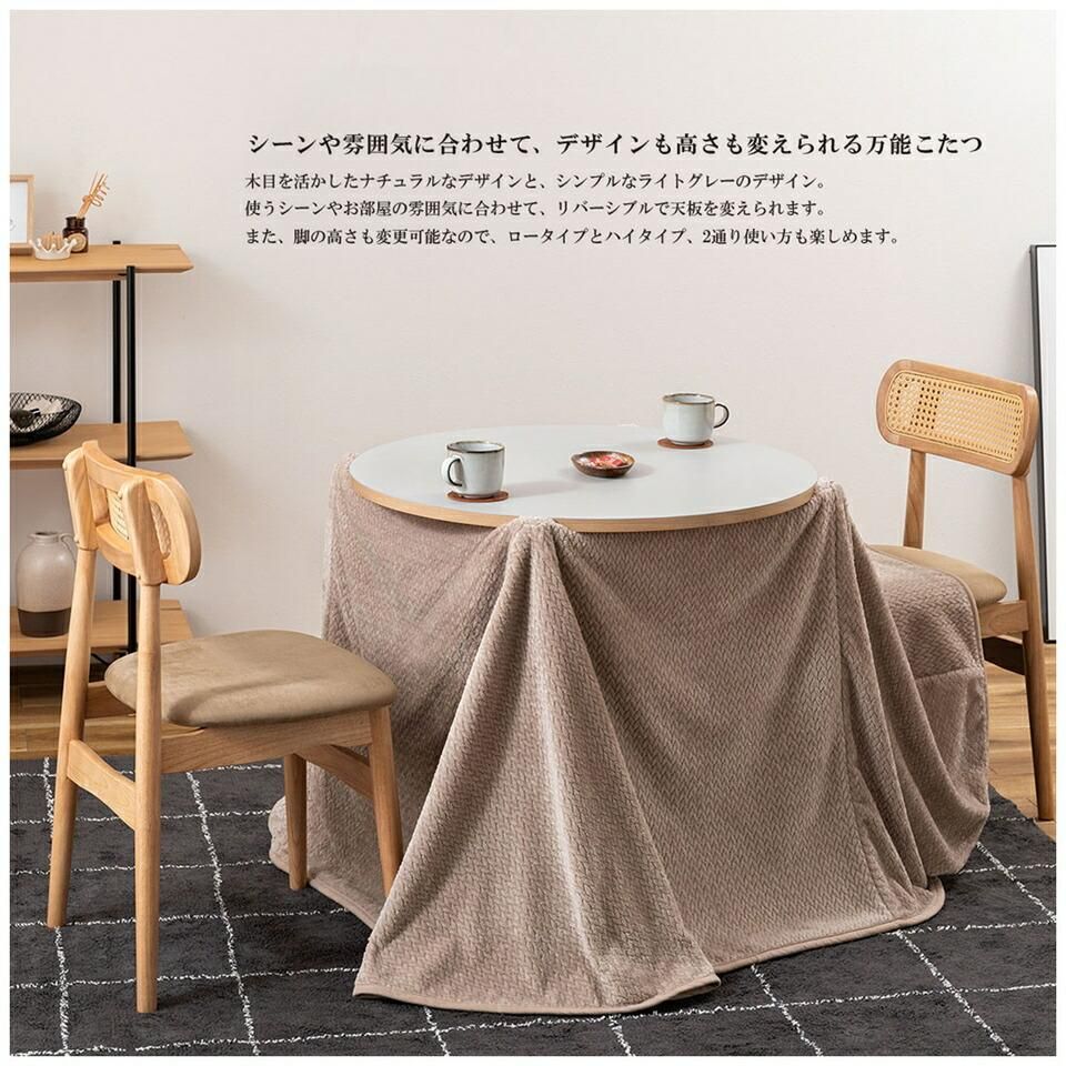 ラウンドコタツ リバーシブル こたつ こたつテーブル こたつ机 コタツ コタツテーブル 直径80cm 高さ調節 継ぎ脚 高さ40cm 高さ70cm ロータイプ