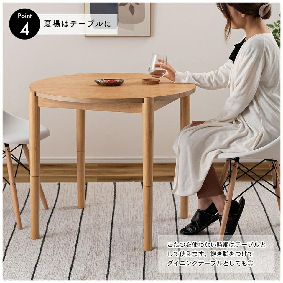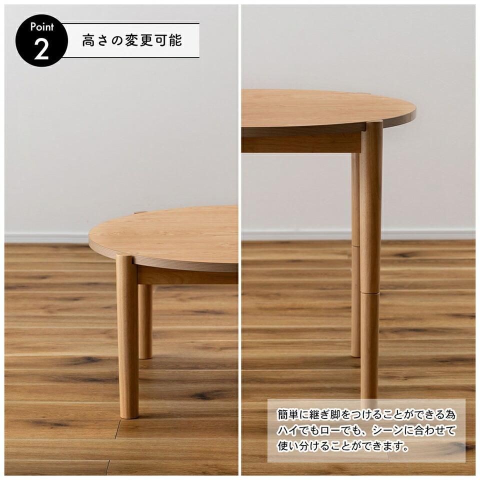 ■ラウンドコタツ リバーシブル こたつ こたつテーブル こたつ机 コタツ コタツテーブル 直径80cm 高さ調節 継ぎ脚 高さ40cm 高さ70cm ロータイプ ハイタイプ センターテーブル リビングテーブル 円形 丸型 オールシーズン 木製 天然木 ラバーウッド 両面 北欧 ナチュラル■