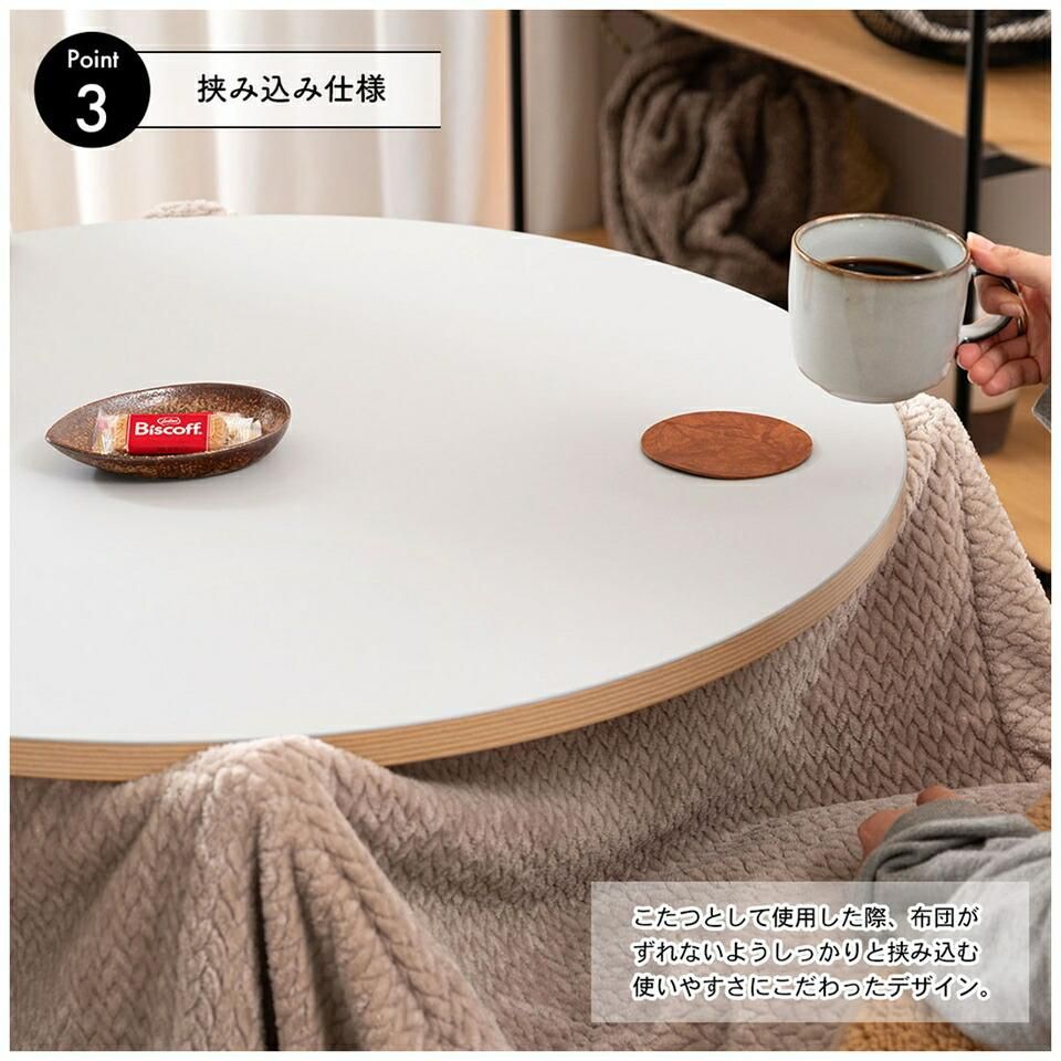 ■備考こたつ こたつテーブル こたつ机 コタツ コタツテーブル 直径80cm 高さ調節 継ぎ脚 高さ40cm 高さ70cm ロータイプ ハイタイプ センターテーブル リビングテーブル 円形 丸型 オールシーズン 木製 天然木 ラバーウッド リバーシブル 両面 北欧 ナチュラル 木目 ベージュ ライトグレー オフホワイト 白