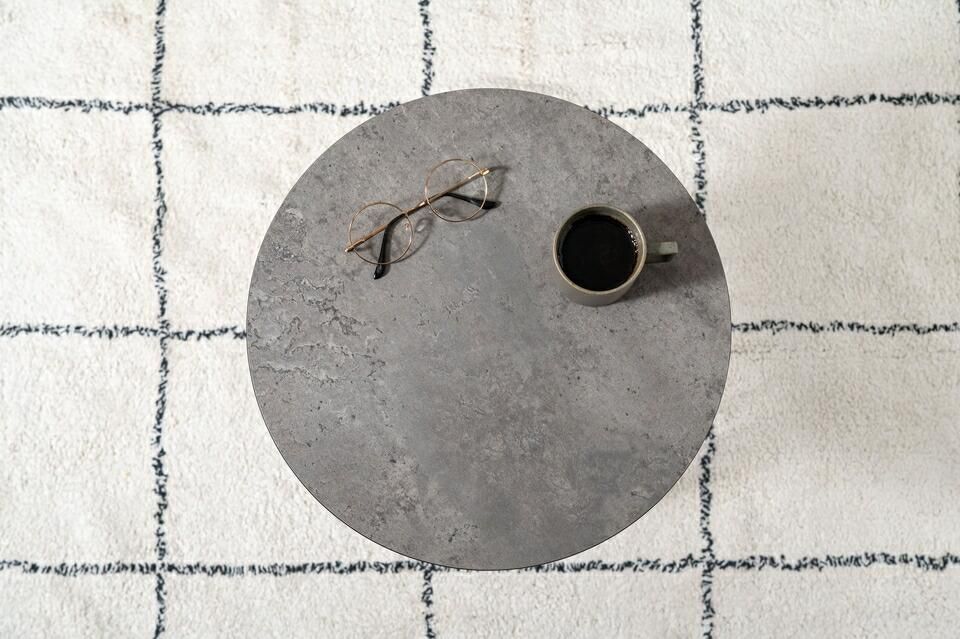 ■備考ラウンドテーブルL 美しい ラウンドテーブル 中央 細い ブラック スチール ネストテーブル モダン デザイン 上品 凹凸 手触り 簡単 保護 キャップ テーブル 丸 サイドテーブル ストーン柄 石目調 アイアン 北欧 インダストリアル シンプル カフェ おしゃれ リビング ソファーテーブル ベッドテーブル カフェテーブル