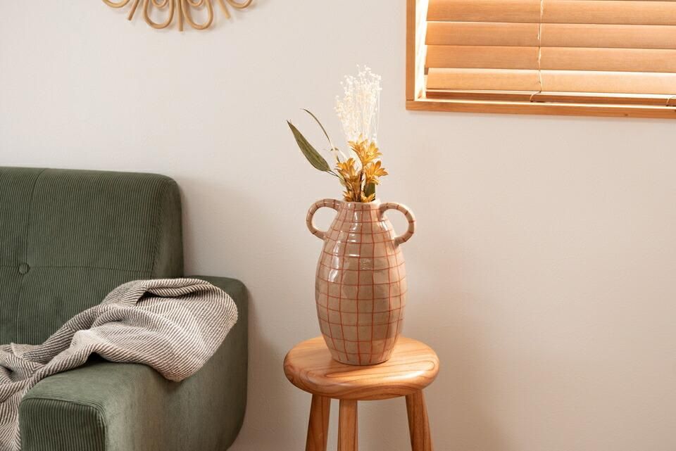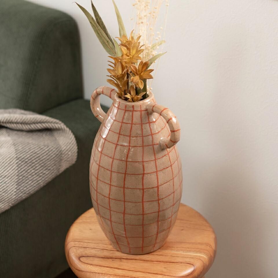 ■フラワーベース 花瓶 花びん かびん フラワースタンド 陶器 北欧 おしゃれ ドライフラワー シンプル 艶 生花 枝物 卓上 床置き 陶器製 和モダン モダン レトロ ベーシック インテリア 寝室 リビング 玄関 廊下 室内 かわいい 大きい 大きめ ベージュ ブラウン 取っ手付き■