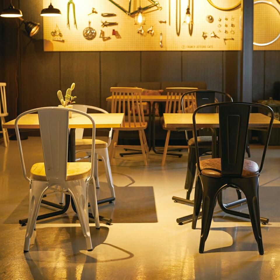 大きな背もたれと、黒い粉体塗装のスチールフレームが特徴のチェア。手触りの良いソフトレザーとの組み合わせがオシャレ。