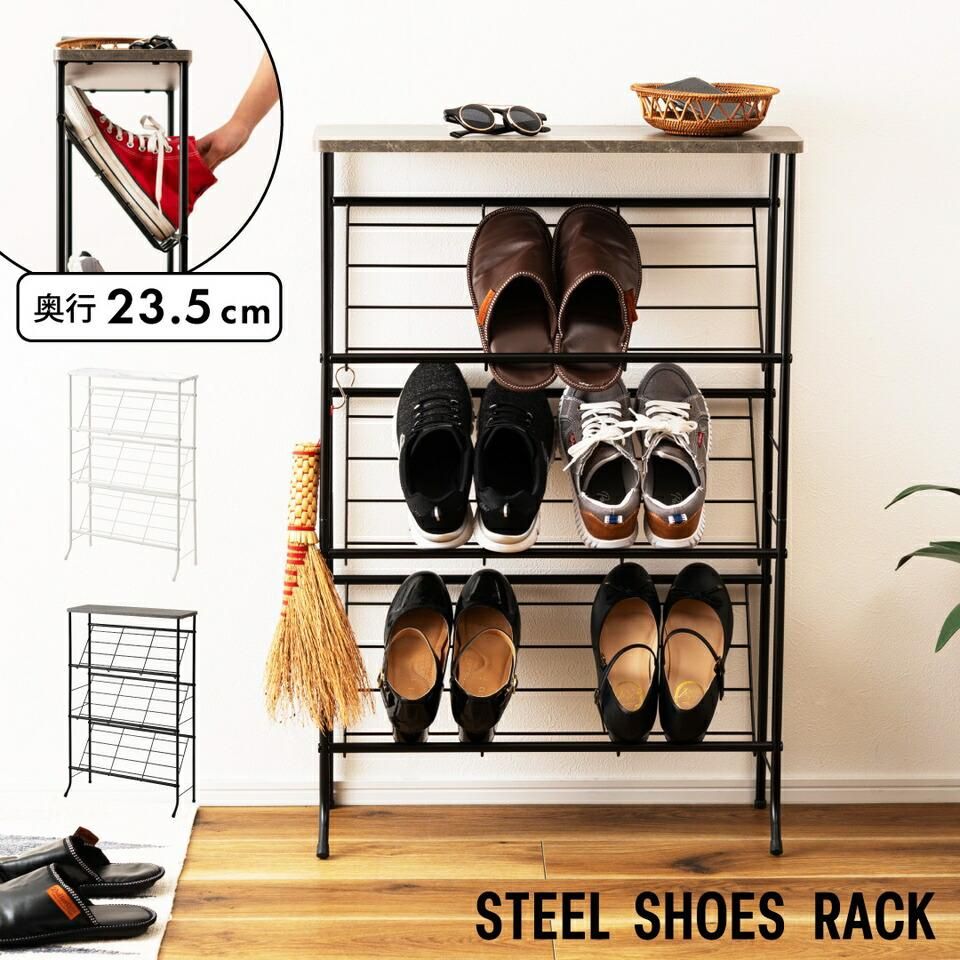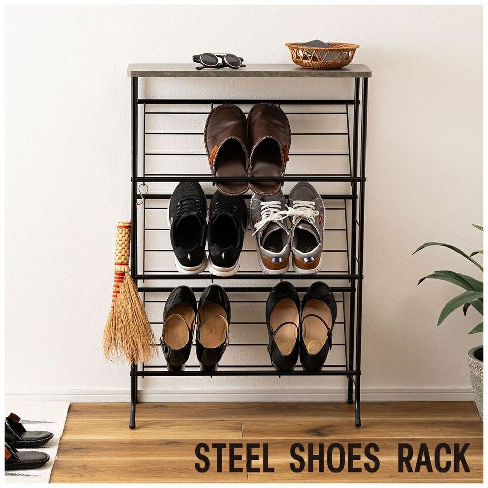 ■石目調シューズラック シューズラック 3段 幅60cm 靴箱 棚 ディスプレイラック オープンラック オープンシェルフ マガジンラック スチールラック 下駄箱 玄関収納 靴入れ 靴ラック 収納棚 スチール シェルフ 天板つき 玄関 省スペース おしゃれ コンパクト スリム 石目調■
