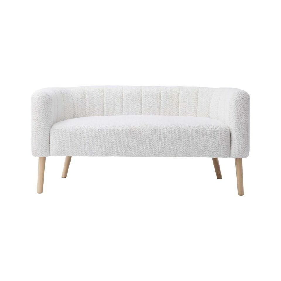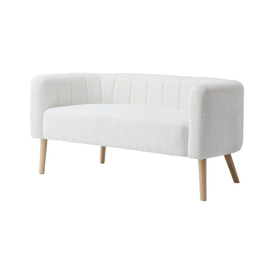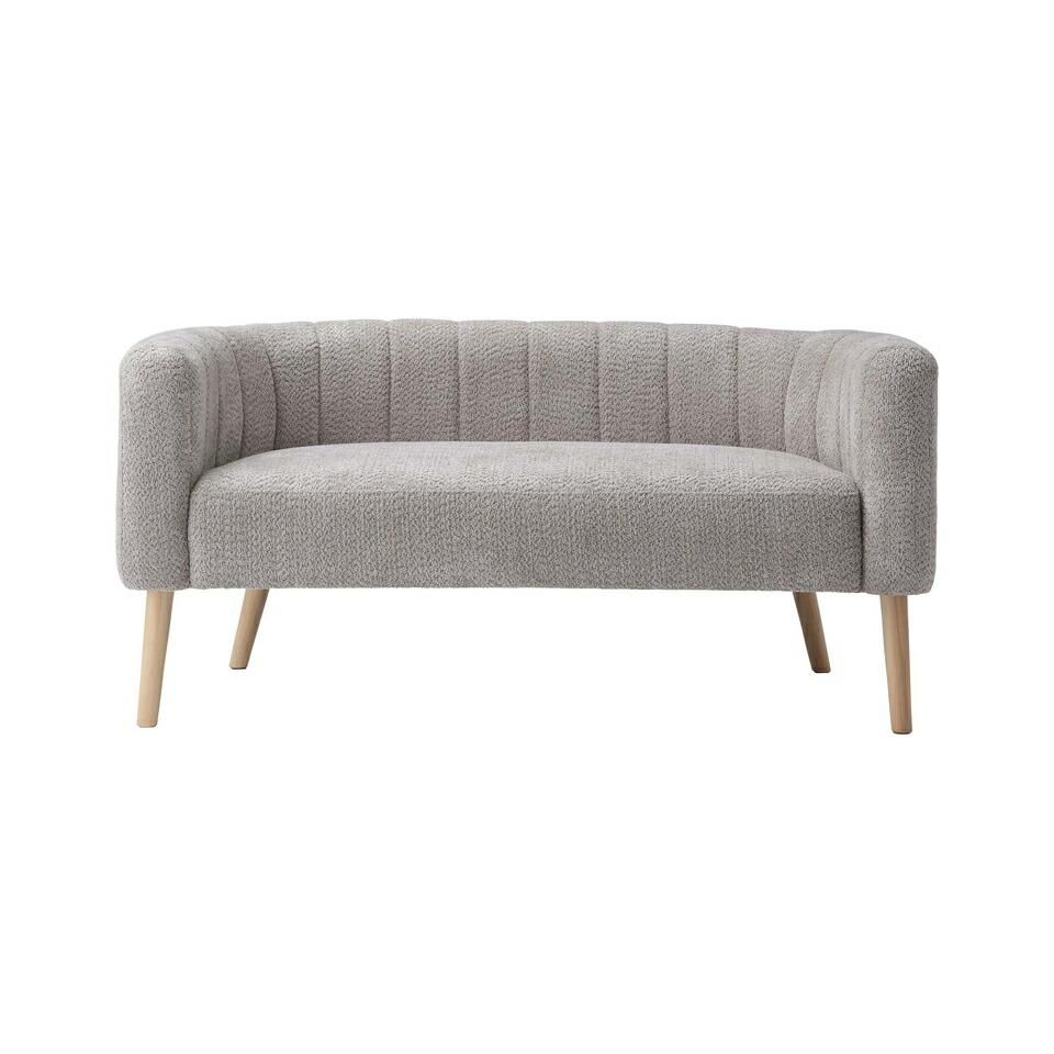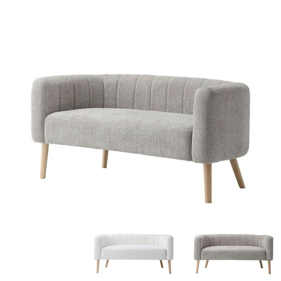 天然木ビーチの脚と、全体的に丸みを帯びた優しい印象のデザインが特徴のソファです。