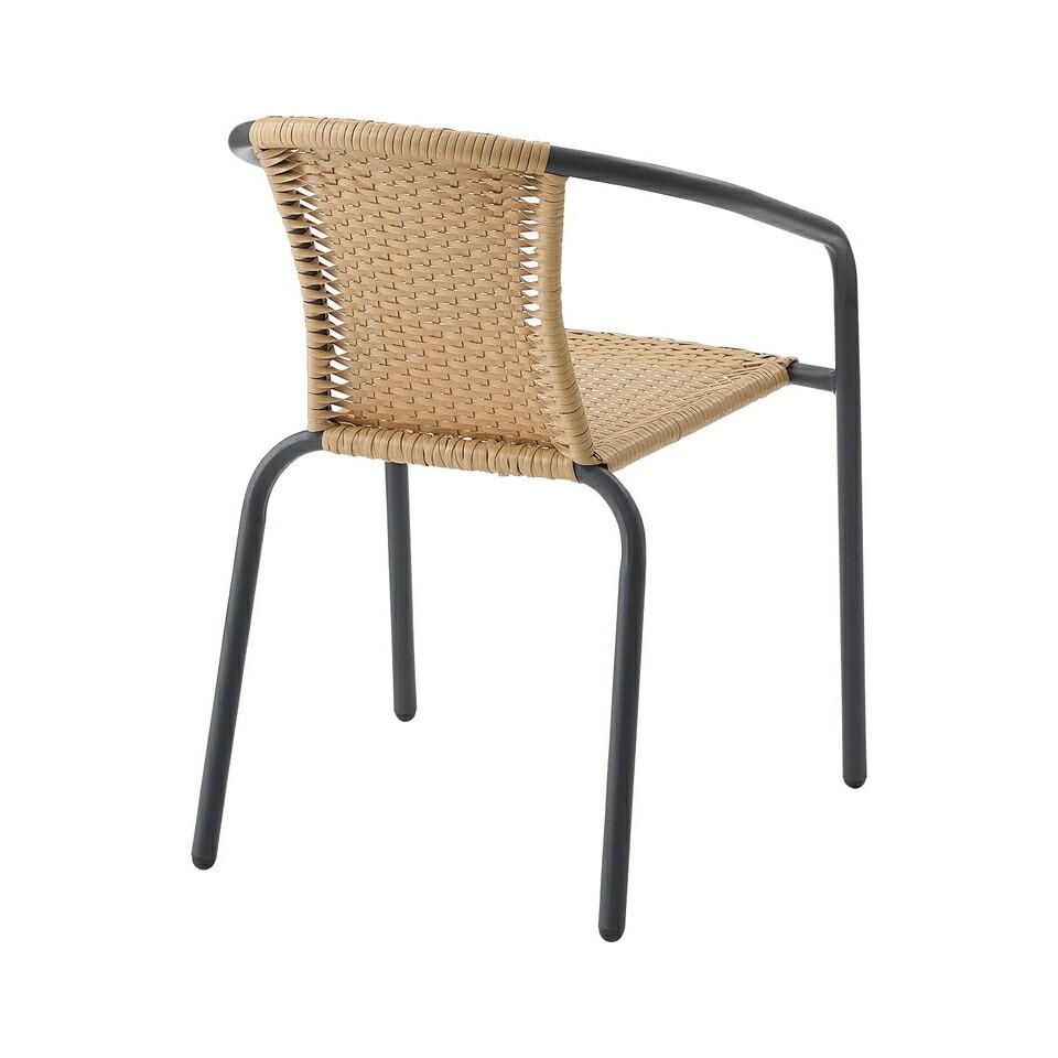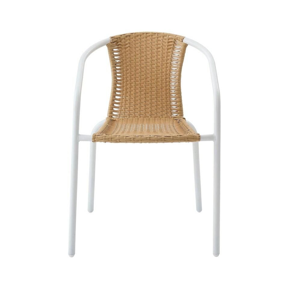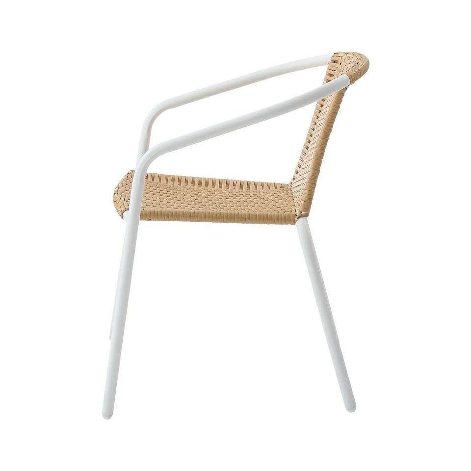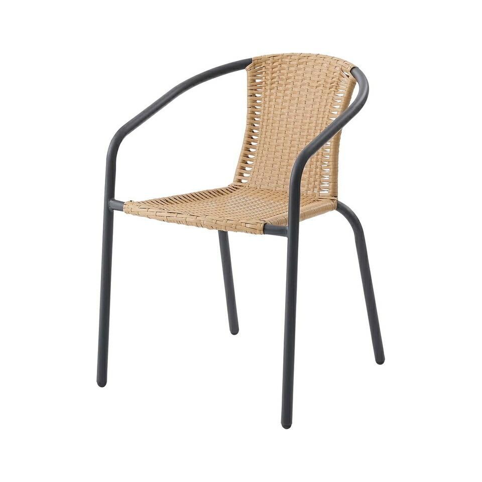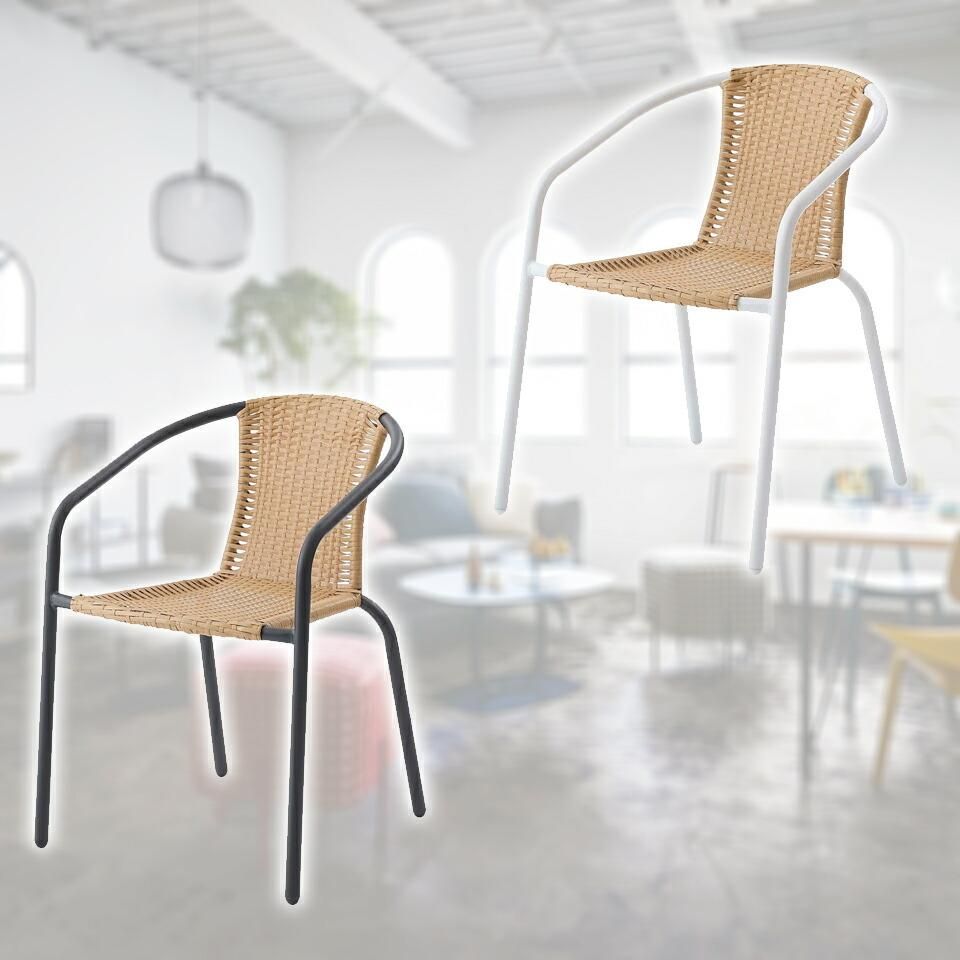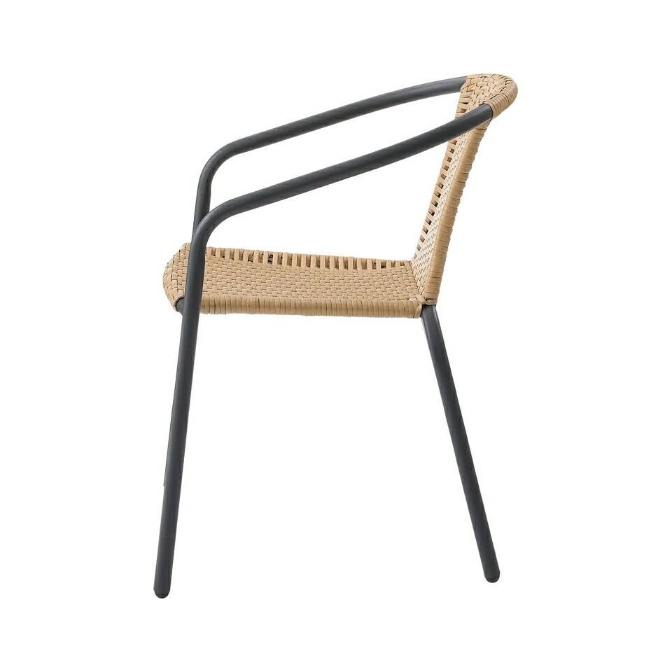 スチールの粉体塗装フレームに、編み込みの座面が特徴のガーデンチェアです。通気性が良く、シンプルなデザインの椅子です。