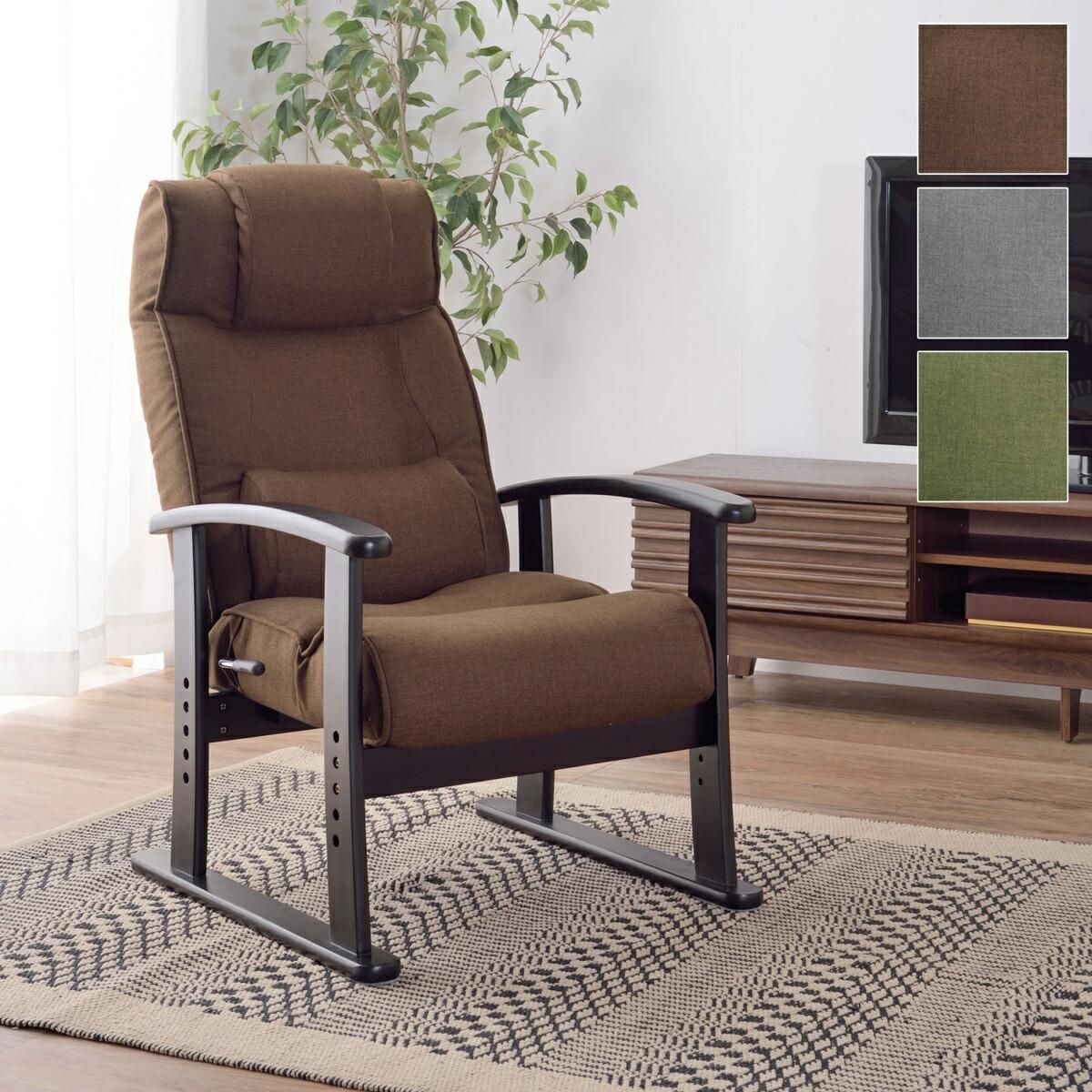■楽々チェア ボリューム高座椅子 リクライニング 高さ調整可 腰楽チェア 健康チェア チェア レバー式 腰楽チェア お座敷チェア 父の日 敬老の日 ギフト グリーン ブラウン グレー ロングセラー チェア ブラウン ブラウン 洋室 リング ■