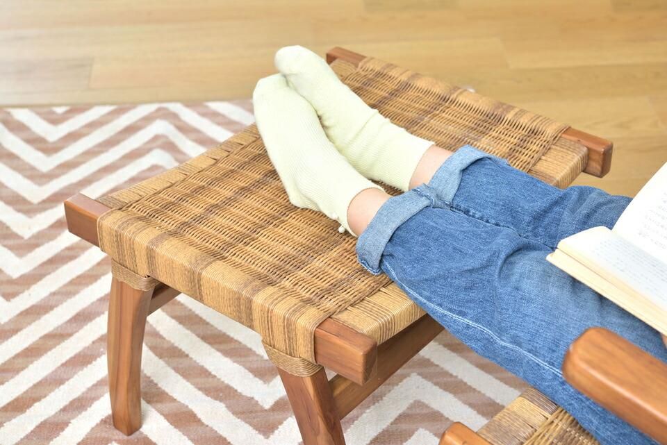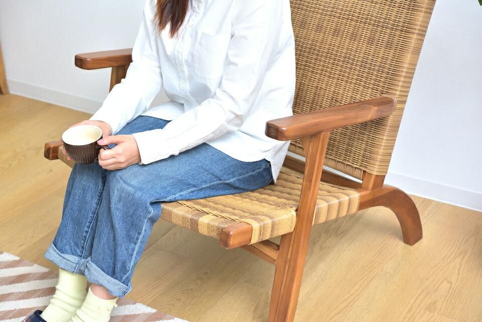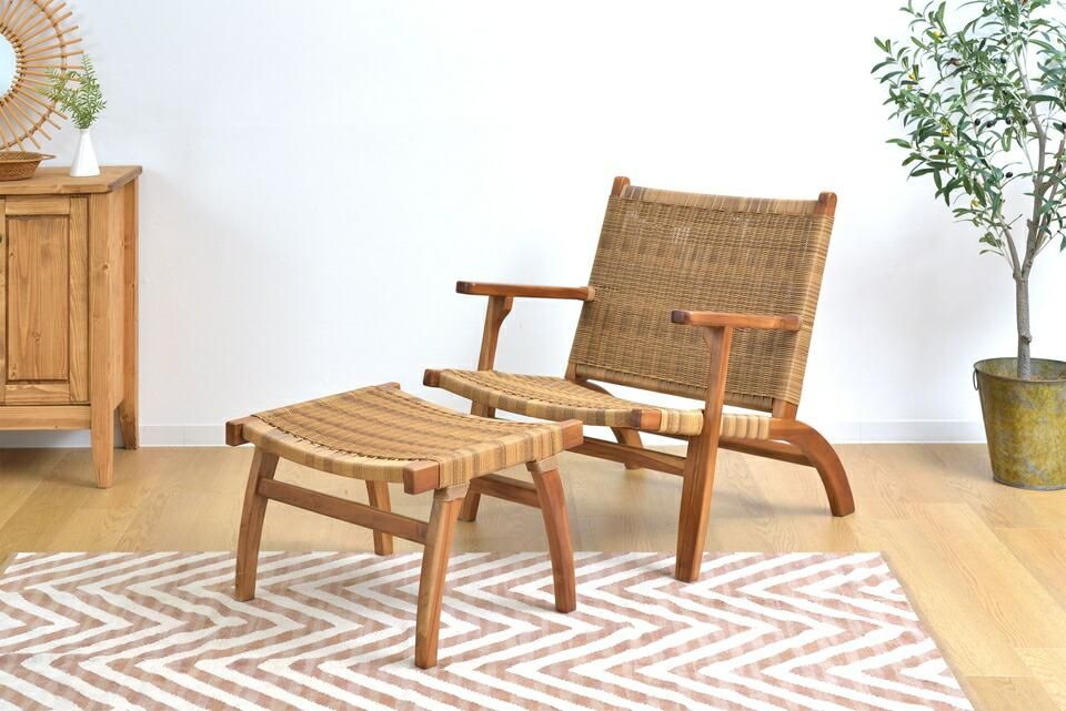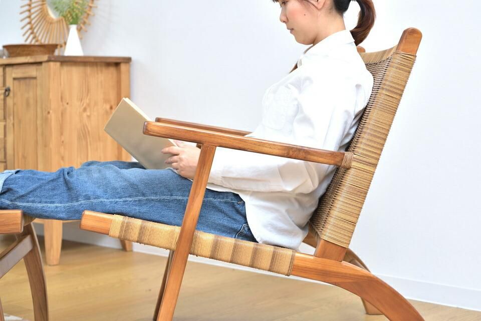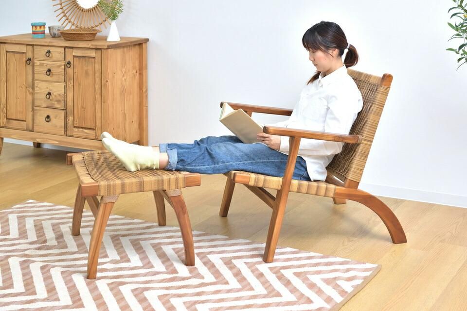 読書などゆったりとした時間に最適なオットマン付チェア。お庭やバルコニーでのリラックスタイムにもおすすめ。