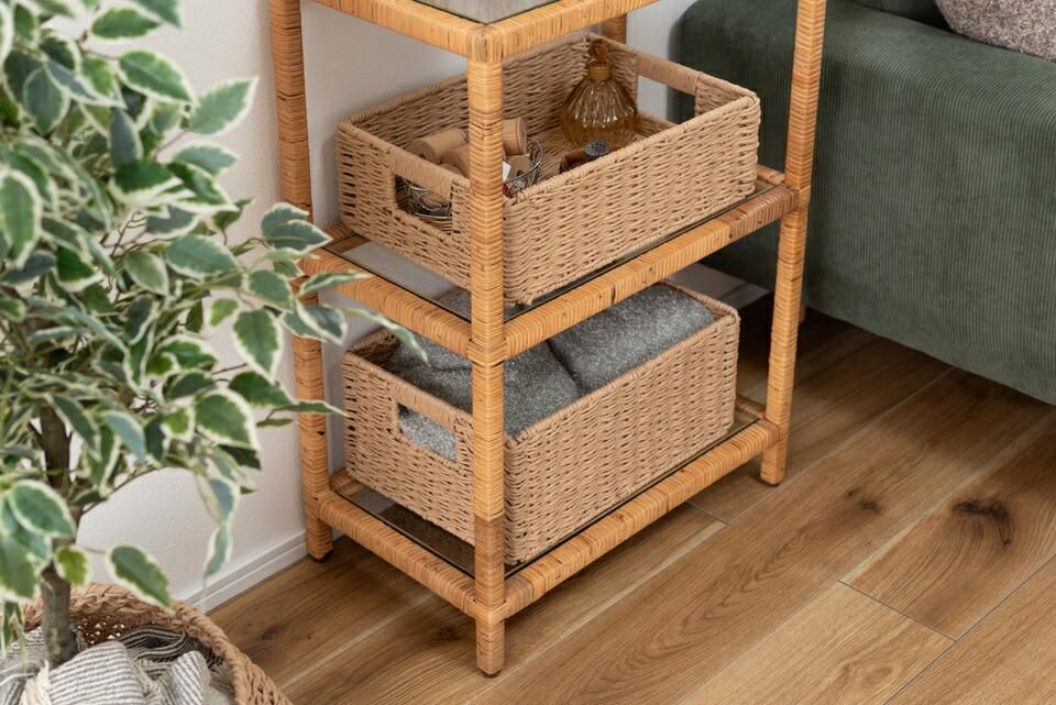 折りたたみ式 収納バスケット Flex Baskets -フレックスバスケット- 使わないときには折りたためる手編みペーパーコードの収納バスケットです。ナチュラルなカラーリングがどんなテイストにもよく合います。深さの違う3サイズからお選びいただけます。