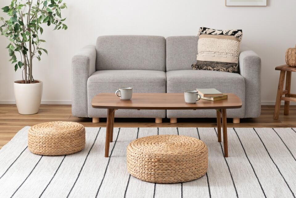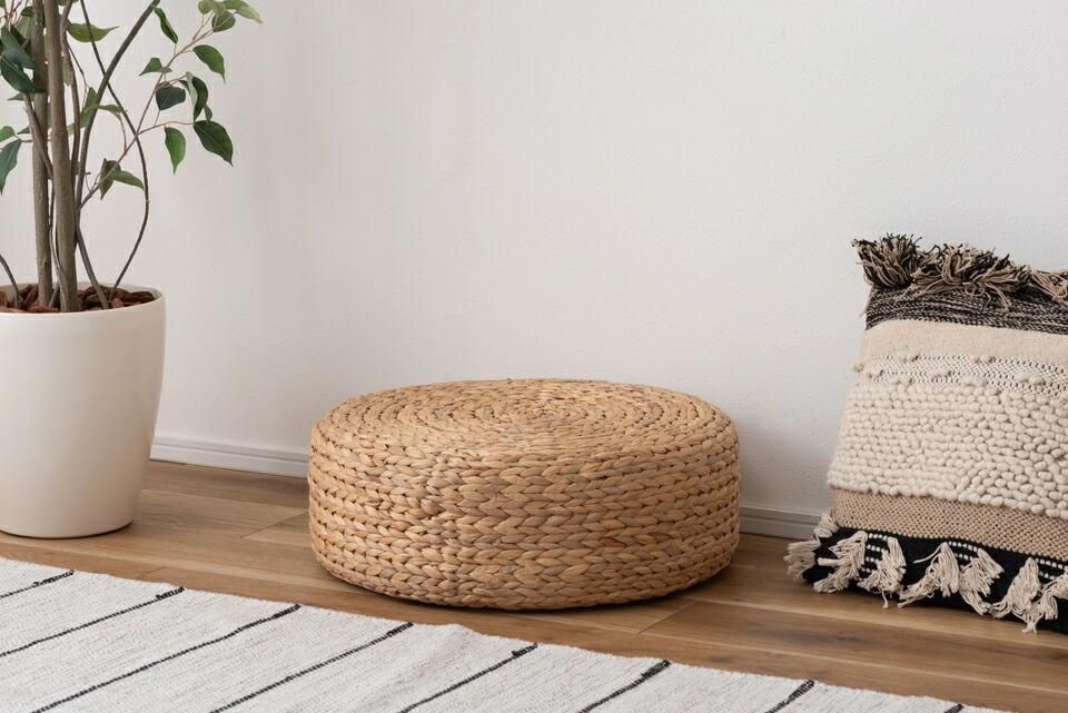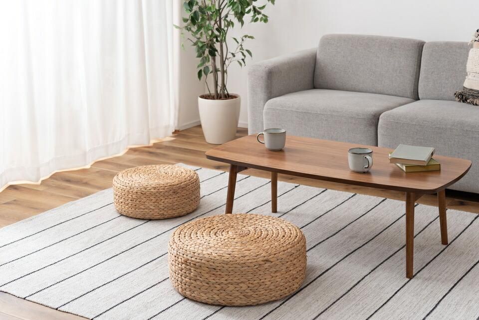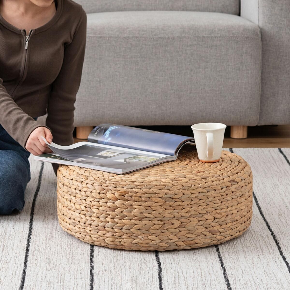 天然素材を活かした、ぬくもりのあるロースツール。丁寧に編み込まれており、一つ一つ表情が異なるところが魅力的です。カジュアル過ぎない、優しい雰囲気がお部屋に温かみを与えてくれます。
