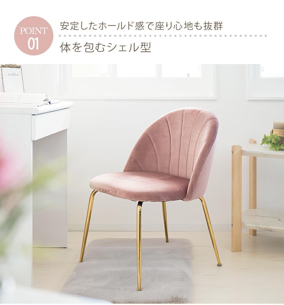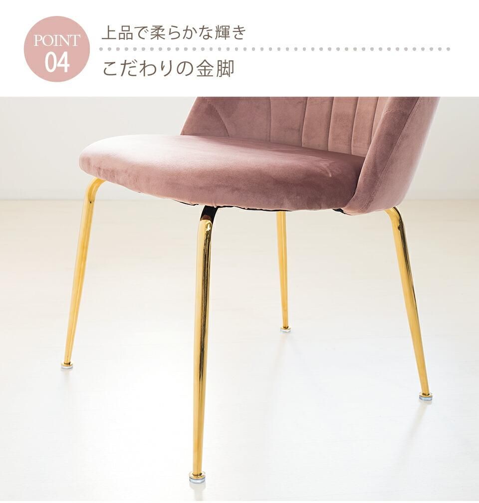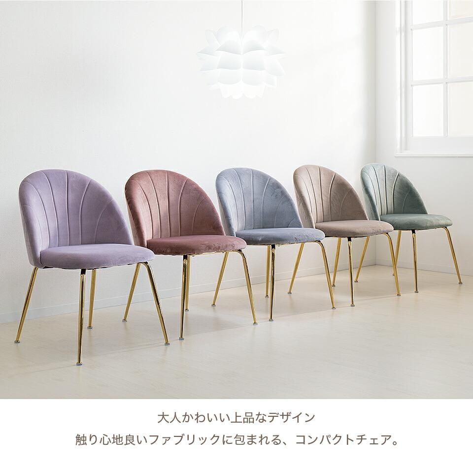 女性らしい優しい雰囲気、触り心地良いファブリックに包まれる、コンパクトチェア。流行りのくすみカラーで空間を彩り、細身な黄金の脚は、高級感を感じさせ、お部屋に少しエレガントな印象を与えます。映えるデザインがお部屋のワンポイントとなり、ワンルームのお部屋やダイニング、様々なシチュエーションでまとまった空間を作り上げます。