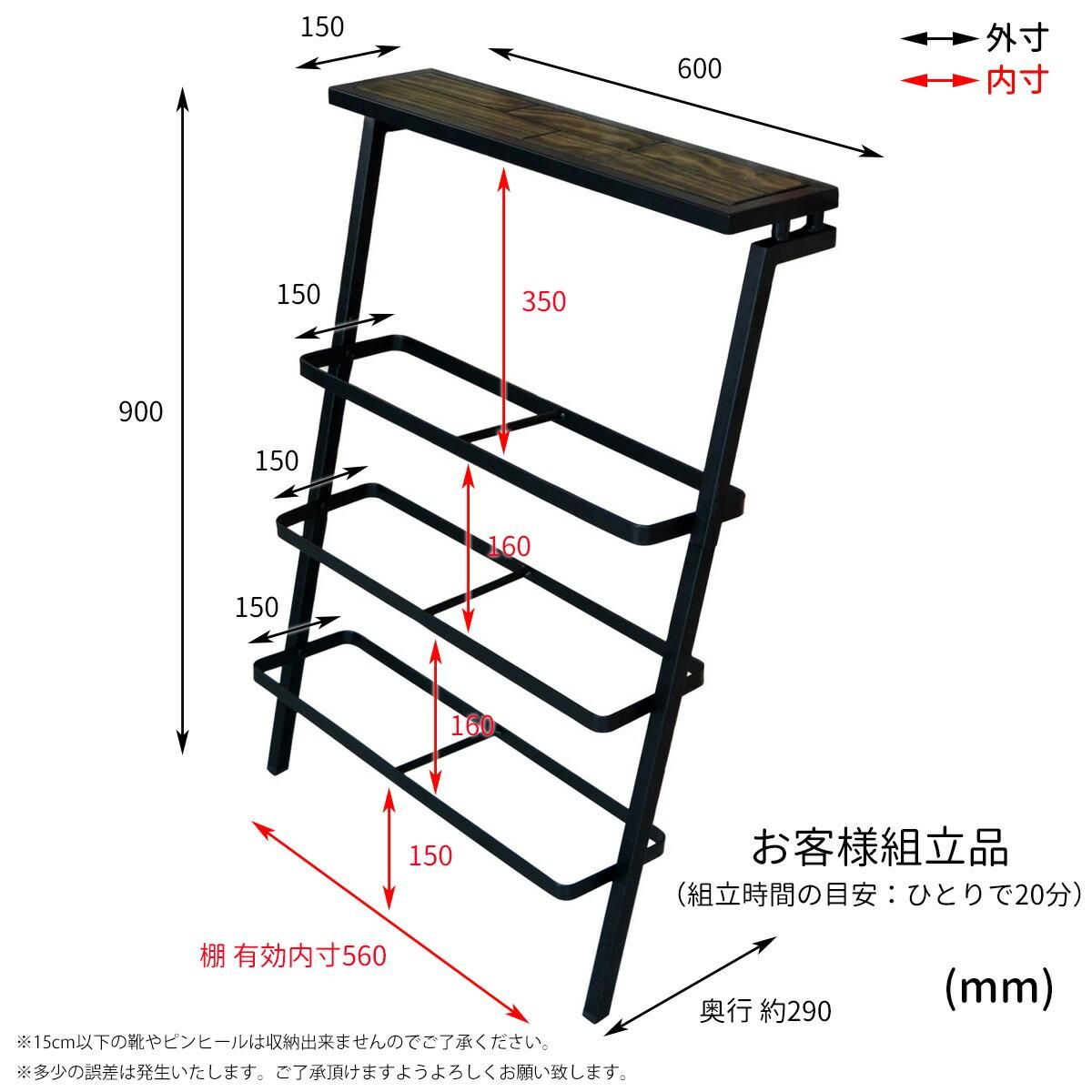 GRANT シューズラック GRSR-600 GRANT シューズラック 3段 幅60 ラダータイプ ブルックリン 男前 インテリア オープン 収納 整理
