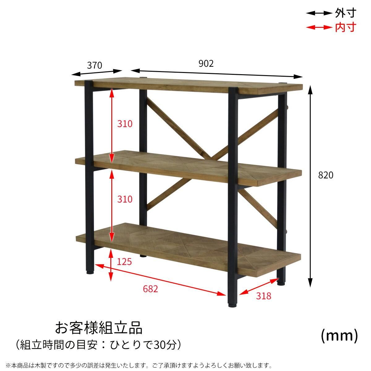KALEIDO カレイド 3段ラック 幅90 オープン 収納 木製 棚 本棚 シェルフ 間仕切り ディスプレイ コンパクト スリム 省スペース 一人暮らし