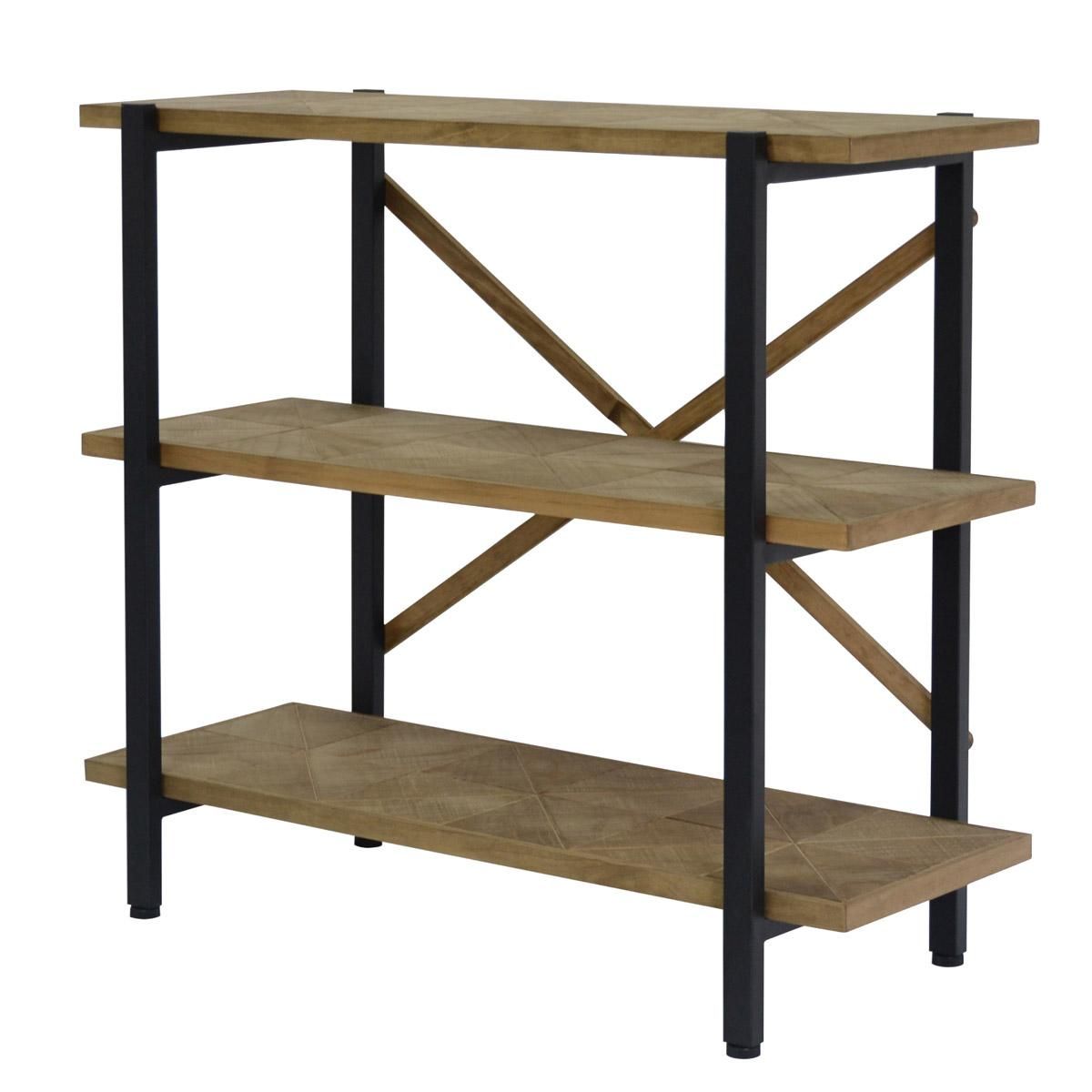 カレイドシリーズは三角形にカットした古材風のパイン材をジオメトリックに並べた、質感の高い天板・棚板に、無骨でシンプルなアイアンパイプを組み合わせたシリーズです。