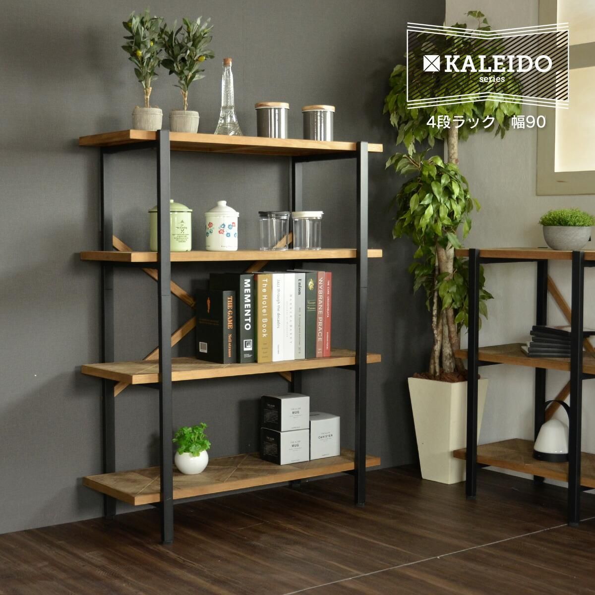 KALEIDO カレイド 4段ラック 幅90 オープン 収納 木製 棚 本棚 シェルフ 間仕切り ディスプレイ コンパクト スリム 省スペース 一人暮らし