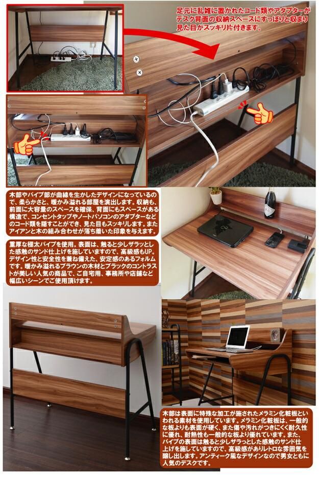 木製 デスク アイアン パイプ 収納 北欧 机 パソコン ライティング メラミン 書斎 ユニット