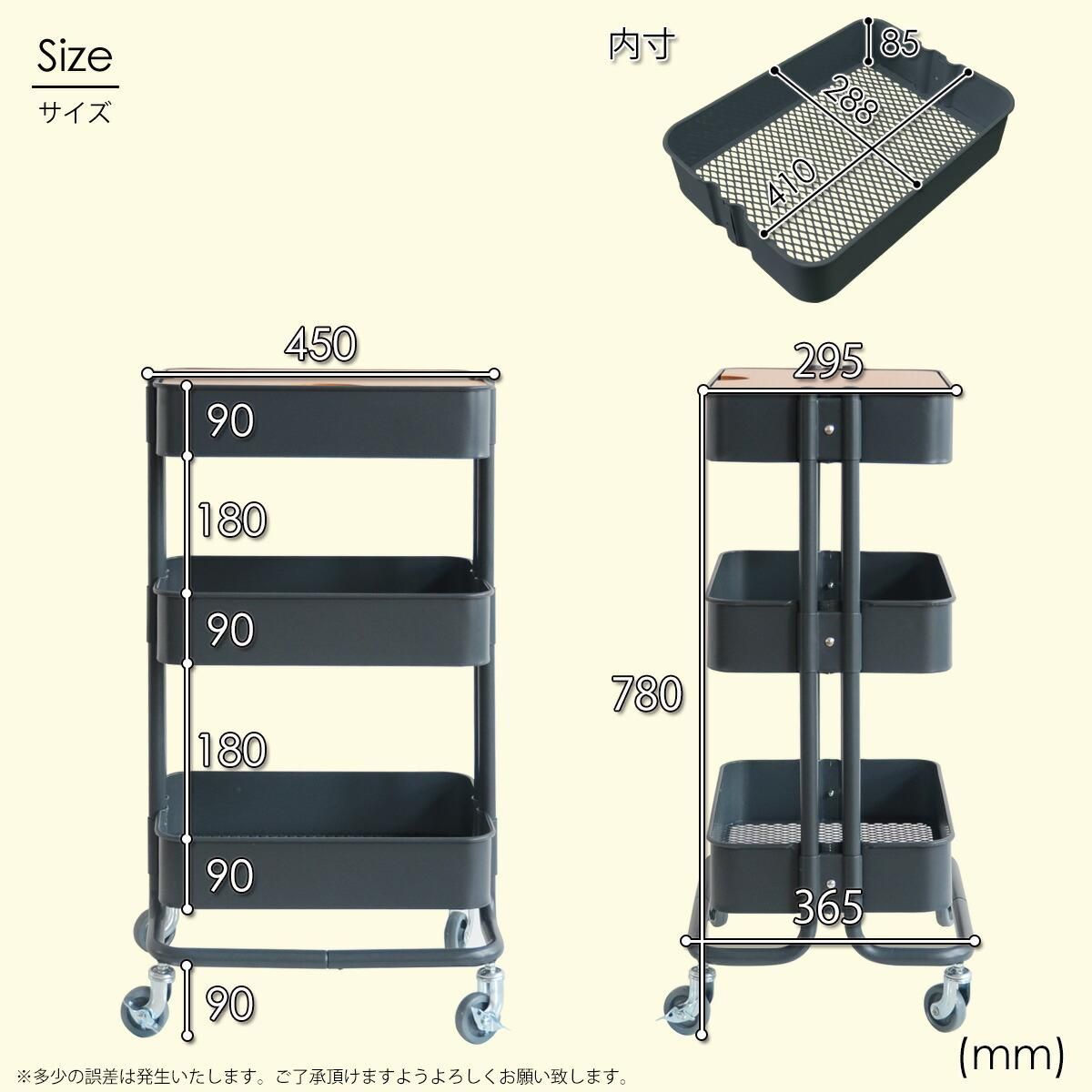 ROSSINI メッシュバスケットワゴン 3段 シンプル ROW-F3S キッチンワゴン 幅45 天板付き フタ付き キャスター付き トローリーワゴン