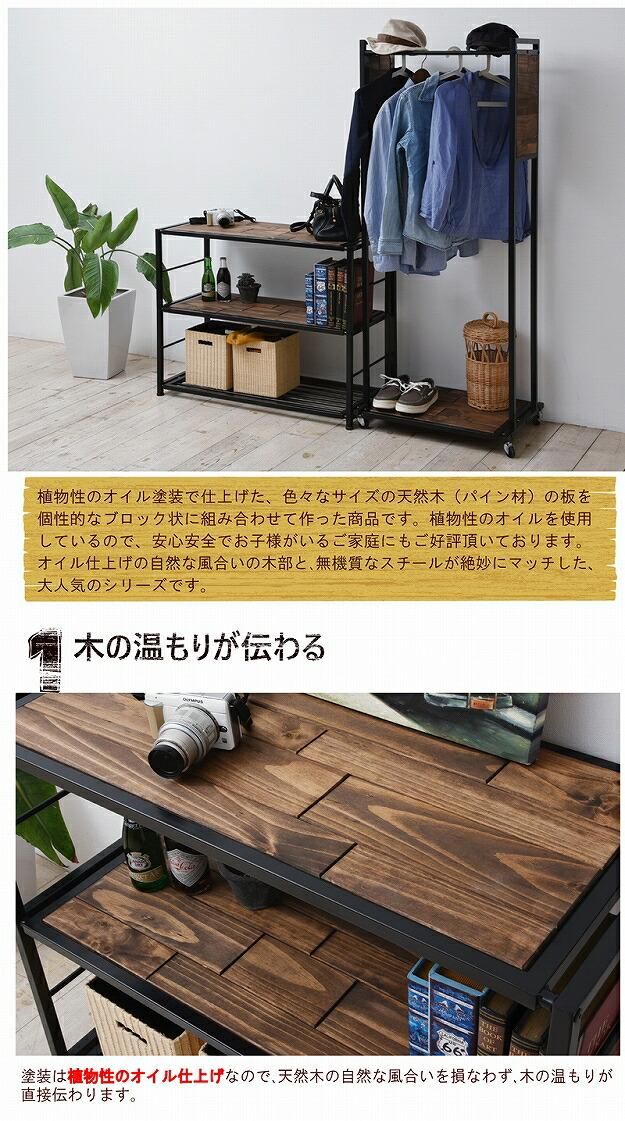 グラントシリーズは、植物性のオイル塗装で仕上げた、色々なサイズの天然木(パイン)の板を個性的なブロック状に組み合わせて作った商品です。植物性のオイルを使用しているので、安心安全でお子様がいるご家庭にも好評です。オイル仕上げなので、自然な風合いの木部と、無機質なスチールが絶妙にマッチした、人気のシリーズです。