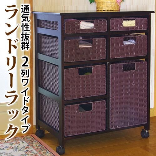 ランドリーラック チェスト 2列 7杯 収納 サニタリー収納 キャスター付き
