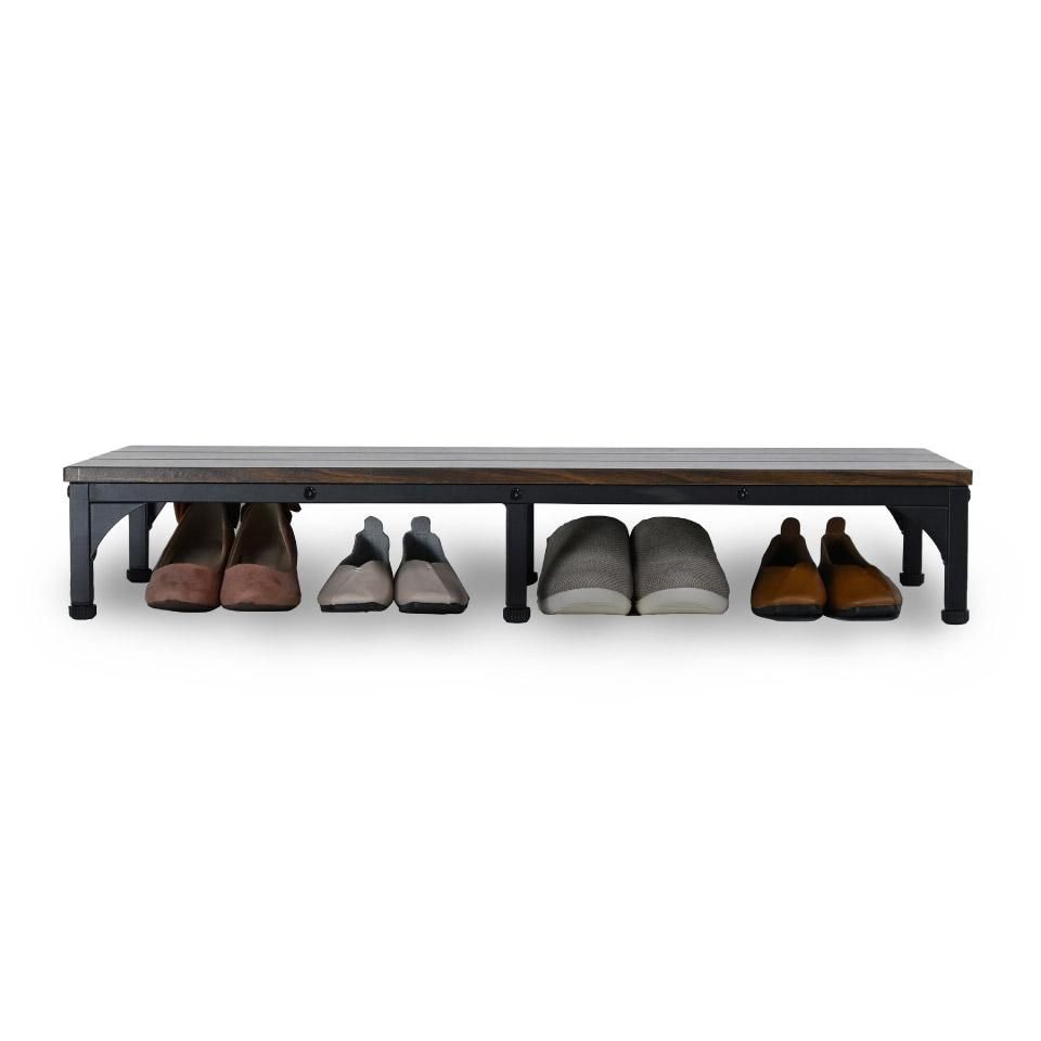 さびやキズに強い紛体塗装を施したスチールフレームに木目の天板といったシンプルなデザインに、45.60.90.120cmの4種のサイズがございますので、幅広いスタイル・広さの玄関にフィット。