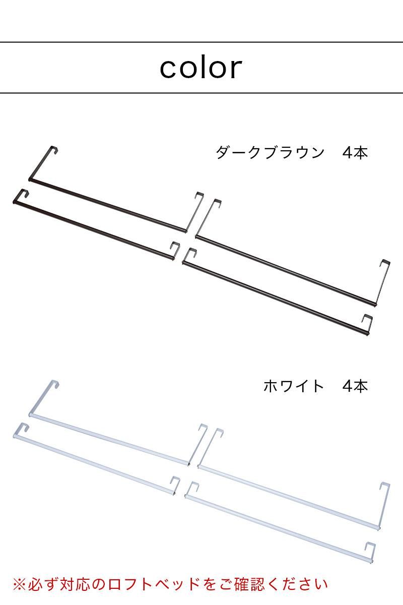 ロフトベッド専用ハンガーポール4本セット。対応しているロフトベットを必ずご確認ください。ベット下に、クローゼットを作れます。