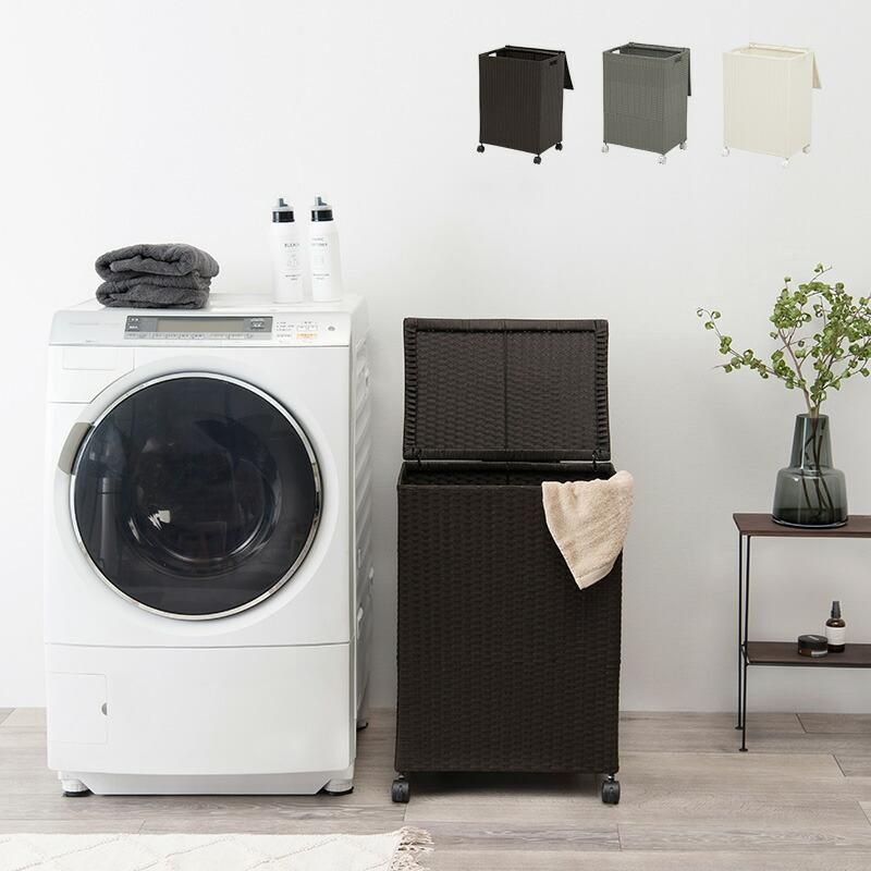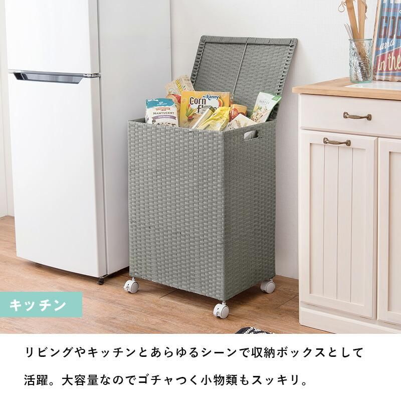 【要確認】沖縄・離島は配送不可地域です。配送先が不可地域の場合はご注文後キャンセル処理させていただきます ■【完成品】収納ボックス キャスター付 キャスター付き収納ボックス ラタン調 カゴ ランドリーボックス フタ付 蓋付 収納 ブラウン グレー ホワイト 組立不要■