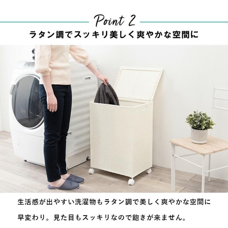 ■【完成品】収納ボックス キャスター付 キャスター付き収納ボックス ラタン調 カゴ ランドリーボックス フタ付 蓋付 収納 ブラウン グレー ホワイト 組立不要■