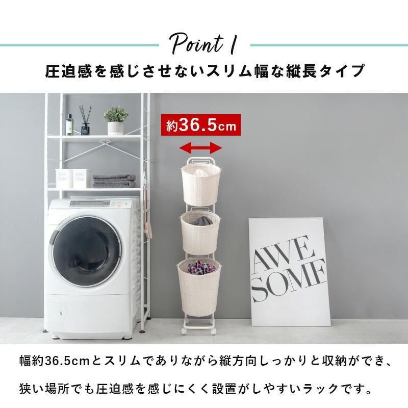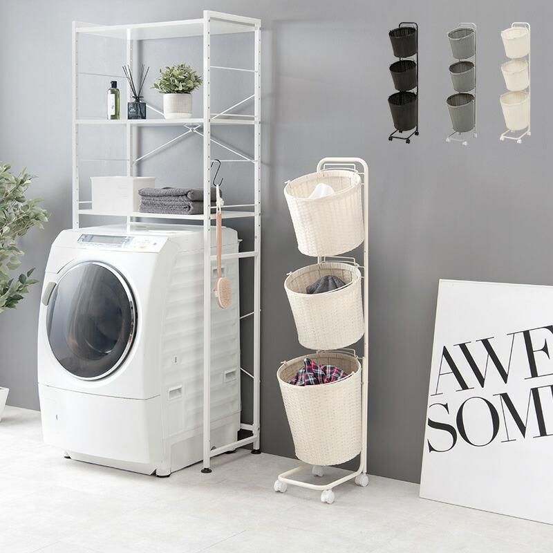 【要確認】沖縄・離島は配送不可地域です。配送先が不可地域の場合はご注文後キャンセル処理させていただきます ■ランドリーラック 幅36 丸カゴ 丸バスケット 3個 3段 ラタン調 大容量 取り外し可能 お洒落 オシャレ ブラウン グレー ホワイト シンプル ランドリー かご ラック 丸かご 取り外し可■