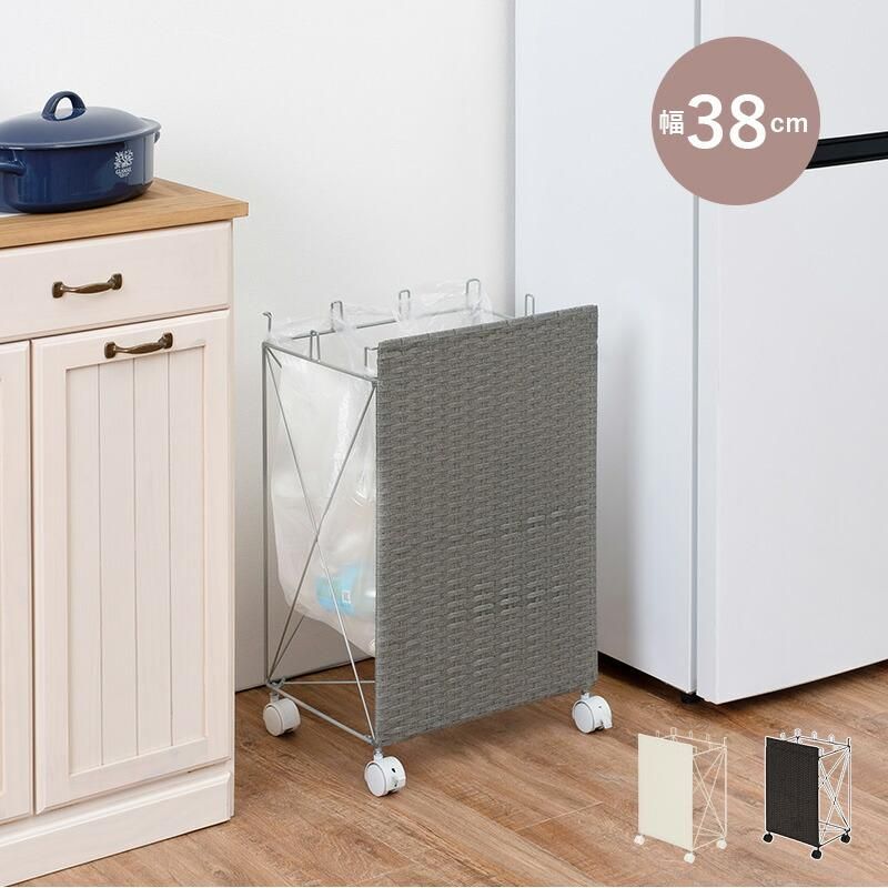 ■【要組立】分別ごみ箱ラック 幅38 6分別 袋かけ ラタン調 ごみ箱ラック おしゃれ ホワイト ブラウン グレー 分別 シンプル スリム 一人暮らし ワンルーム 賃貸 省スペース ごみ箱 分別ごみ箱ラック■