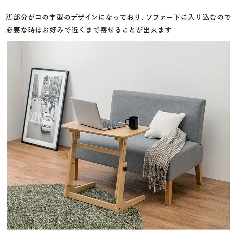 ■サイドテーブル 昇降テーブル パソコン台 木製 ブラウン 高さ調節可能 おしゃれ 高級感 ソファーテーブル ナチュラル 高さ 55 60 65 70■
